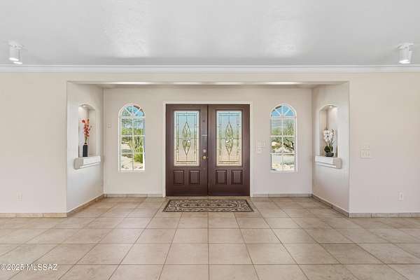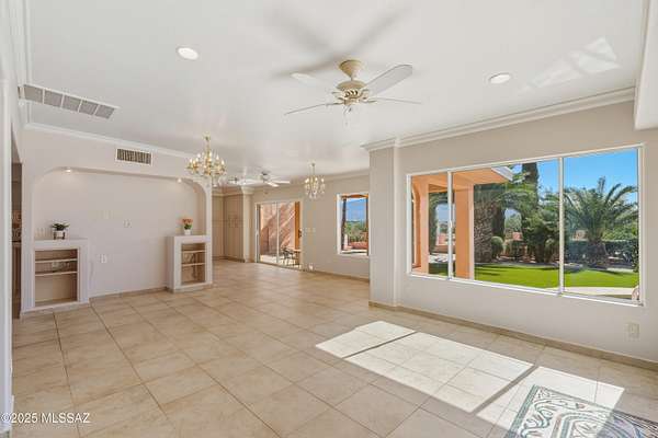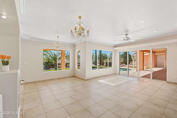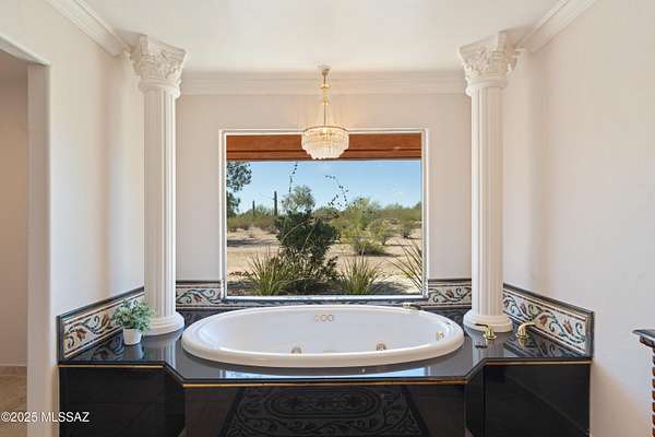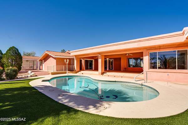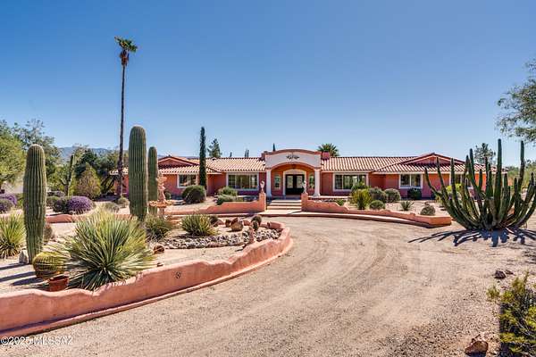 Exquisite, privately walled and gated estate in Northeast Tucson. Nestled on nearly 6 acres in the heart of the stunning Tanque Verde Valley, this luxurious hacienda-style estate offers panoramic views of the Santa Catalina and Rincon Mountains. With over 5,000 sq. ft. of living space, the property includes a main house, guest house, oversized 3-car attached garage with brand-new doors and openers under warranty, oversized 5-car detached garage, RV carport, workshop, greenhouse, and a separate storage building. The open floor plan, filled with natural light from abundant windows, creates a bright and airy ambiance. The freshly painted and professionally cleaned interior welcomes you with warmth and comfort. Two wood-burning fireplaces add to the relaxing atmosphere. The expansive gourmet kitchen features custom, high-quality cabinetry, a large island, and updated top-of-the-line appliances. A separate butler's kitchen offers additional cabinetry, counter space, and laundry hookups. The gorgeous primary suite includes a massive walk-in closet and a spacious bathroom with dual vanities, a soaking tub, walk-in shower, exercise room, and sauna, not to mention pool, garden and mountain views! Three generous guest bedrooms in the main house each have private full bathrooms, with two offering separate exterior entrances. This unique home boasts multiple dining areas, a formal dining room, living room, family room, flex room (ideal as a library, study, office, or game room), and two powder rooms. The exterior is equally impressive. A grand covered front entrance showcases breathtaking views of the Santa Catalina Mountains, leading to a wraparound porch with equally stunning vistas. The expansive covered patio at the rear of the home, accessible from several rooms, opens to a private desert oasis. The fully fenced backyard features a sparkling, professionally maintained pool with a brand-new pump, newer artificial turf, mature vegetation, low-maintenance landscaping, and multiple outdoor seating areas - including an additional covered patio off the kitchen, gazebo, pergola, and BBQ area - perfect for entertaining or relaxing under the Sonoran sun and stars. The 560 sq. ft. guest house, with 1 bedroom and 1 bathroom, is tucked away at the end of a long driveway, ensuring complete privacy for owners and their guests. Recent upgrades include full replacement of the main house tile roof underlayment (a couple of years ago), flat roof recoating (October 2025, with a 2-year warranty), new garage doors and openers (October 2025, under warranty), full painting of the interior (October 2025), stucco repairs (October 2025), comprehensive termite treatment (July 2025, with active 2-year warranty), new pool pump (October 2025, on warranty) and extensive landscaping (October 2025). Zoned as a horse property and spanning 5.73 acres, this estate is a dream come true for equestrian enthusiasts. With endless possibilities, this magnificent property is truly a rare find. Bring your creativity and make it your own - experience life in your private piece of paradise. / Visit the "Documents" section of the listing for pictures of the butler's kitchen, guest bedrooms and bathrooms, guest house, garage and RV carport. / Natural gas is available in the street. / The listing agent is related to the trustee.