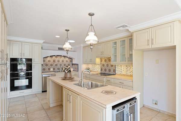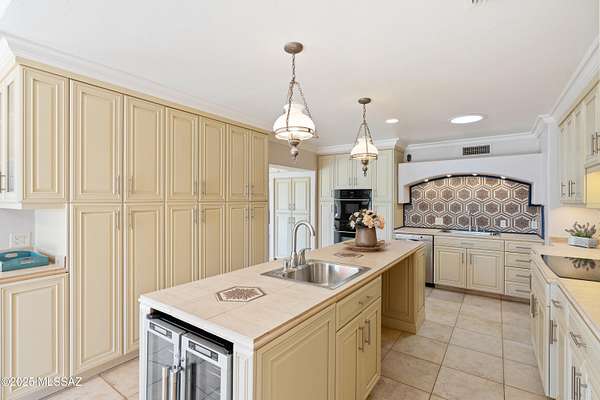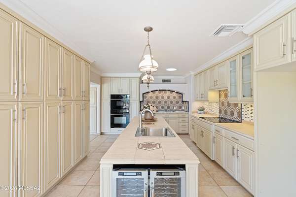 - Dishwasher, Disposal, Electric Cooktop, Electric Oven, Exhaust Fan, Microwave, Prep Sink, Refrigerator, Wine Cooler