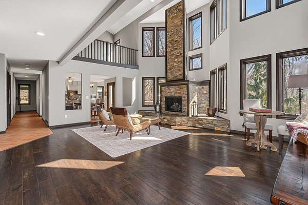 There are properties that offer space-and then there are places that offer something far more rare: a way of living. This exceptional sprawling estate spans over a mile in depth on 62.79 acres. It features a main level primary bedroom with spa like bath, eat in kitchen with stainless appliances, cozy nook and loads of nature light, living area with fireplace and vaulted ceilings, two additional spacious bedrooms and an open loft. The lower level features a theater room unlike anything you've ever seen, with 144' screen and A Dolby Atmos system with premium Klipsch speakers, and reclining theater seating. This is an experience that must be seen and felt to be appreciated. For more fun and entertaining-visit the extraordinary bar/lounge that is just steps from the front door. Complete with commercial fridge, poker table, retro video game (500 games) and all bar signage and lighting. This fantasy property has been curated over years, and operates turn key. The property is an equestrian dream, with miles of riding trails, meandering creek, and mature hardwoods make this the ultimate outdoor paradise. Nature envelops you on the back deck and offers a level of serenity and privacy unmatched by any other property. In addition to the deck, the fire pit offers another gathering place. There are 3 total parcels included totaling 62.79 ares. Outbuilding sizes are 30x40 (the lounge), 24x30 horse barn with power and water, and 24x40 equipment barn with concrete floor and tack room. The property on Shaytown Rd. (37.84 acres) has approx 25 tillable acres, plus grassland, woods and a 32x48 pole barn with two overhead doors, concrete and 8' overhang to enjoy sunsets. The story of this property cannot be captured in an MLS write up and must be experienced to appreciate. Several furnishings are remaining with the home, including all theater belongings and bar/lounge signage and equipment. This storybook estate offers privacy and a lifestyle that you will not want to leave.