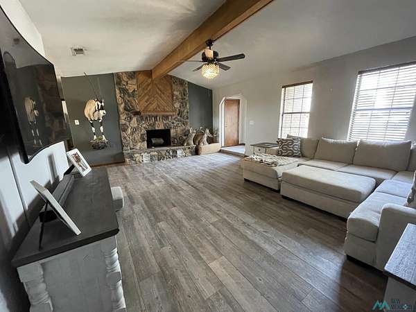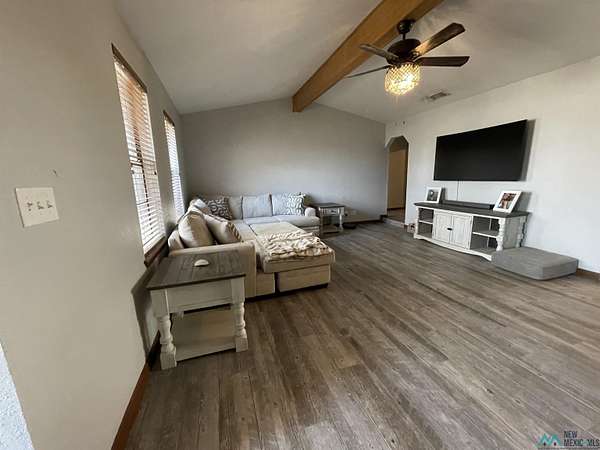 Charming country home sitting back in the middle of 7.28 acres on the north end of Hobbs. Custom built Brick home with vaulted living room ceiling, new wood look ceramic tile throughout. Isolated master bedroom with a large walk-in closet. Open floor concept with kitchen overlooking dining area. Brick fireplace and mantle at the center focus of living room. Extended driveway from blacktop grants for more privacy. This country property is ideal for animals, especially show animals. With a show barn as well as a horse pen and barn. Chicken house and pen. And equipped with a large covered RV port for trailers. Enclosed garden with raised flower beds. Water well is about a year one year old at 250 feet depth with a 5 hp pump assembly. HVAC Unit is Only about two years old. Beautiful horizons all around set the stage for the ultimate country experience and maybe a little touch of Texas here and there. Don't hold your horses too long and miss out on this rare opportunity!!
