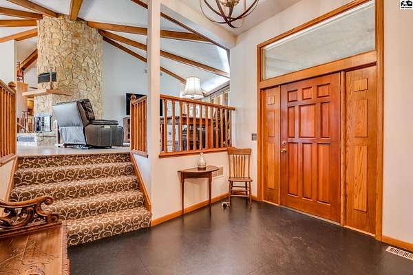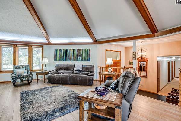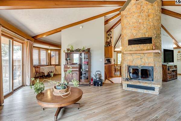 Twenty four acres featuring a beautiful, unique home on your own private "lake". Fish off multiple docks or launch your fishing boat to find the best fishing spot! The custom built home has three bedrooms and 2 baths on main level. Wood burning fireplace with gas starter. There is family room area, fourth bedroom and 3rd bath in walk out basement. Gorgeous views on the water from the multiple decks. Separate utility room on the main level. Property also has 48x42 metal building, a 40x34 metal building and two sheds. Three wells, one for irrigation, one for house and one for shop. Roof was new summer of 2021. Home has solar panels (avg. electric $18/mo.).