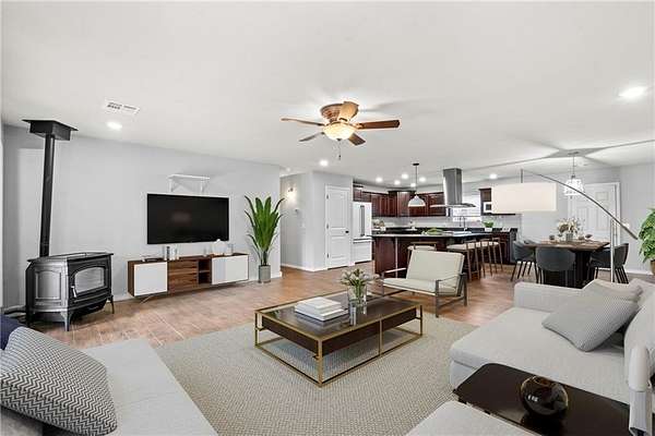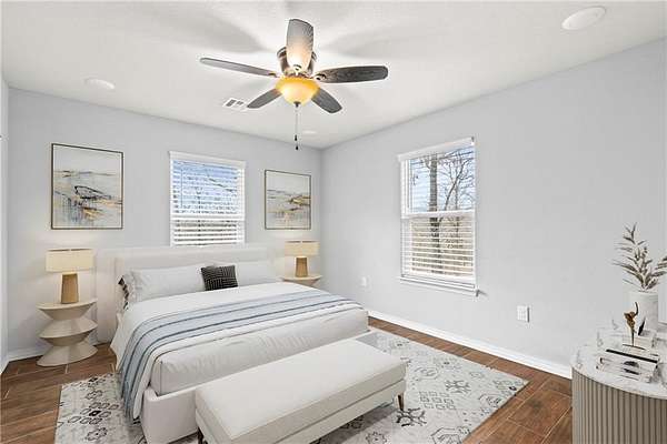 - Blinds, Ceiling Fans, Granite Counters, Pantry, Smoke Detector, Split Floor Plan, Walk-In Closets