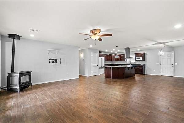 Exceptional secluded estate on 12.75 acres near Lincoln Lake, offering privacy and convenience. This custom home features 3 bedrooms and 3.5 bathrooms, with every bedroom having its own ensuite, and a spacious primary suite. The open floor plan showcases wood-look tile throughout, granite countertops, and a chef's kitchen with GE Cafe appliances. Designed for peace of mind, the home includes a dual-fuel furnace, whole-house Generac generator, indoor 12-person storm shelter, and a pellet stove for added charm. Outside you'll find a gated asphalt drive, smokehouse/meat smoker, 40x60 enclosed barn with open truss, and a 30x50 insulated shop with dual mini-splits and bathroom--ideal for business owners or equipment storage. A finished 16x40 cabin with bed, bath, kitchen, living space, and laundry offers options for guests, multi-gen living, or rental income. Whether you're looking for a place to operate a business, host family, or enjoy quiet country living, this property delivers unmatched versatility and privacy.