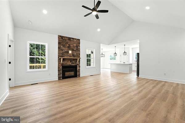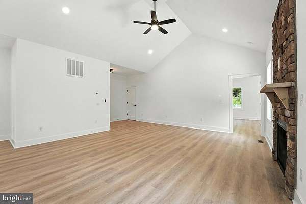 This modern rambler is nestled on a 2.41 acre lot, just 10 minutes from popular Davis Street in Downtown Culpeper. Completion is expected end of January - if you hurry, you can still choose most of your preferred interior finishes! The list price includes vinyl plank flooring in the main level common areas and bedrooms, tile in the bathrooms, a beautiful stone fireplace surround, sleek white cabinetry, stainless steel kitchen appliances, quartz countertops, modern light fixtures, and ceiling fans in the primary bedroom and living area. The sliding glass door off the kitchen dining area will lead to a large rear deck, which will be the perfect spot for grilling, or just relaxing with wooded backyard views. The massive unfinished basement includes rough-in plumbing for a possible future 3rd bathroom. There will be a concrete pad at the basement walk-out as well. Some listing photos are from previously built Preston II models. This property's exterior and interior finishes will differ, dependent on builder and/or buyer preference and material availability.