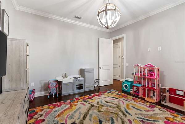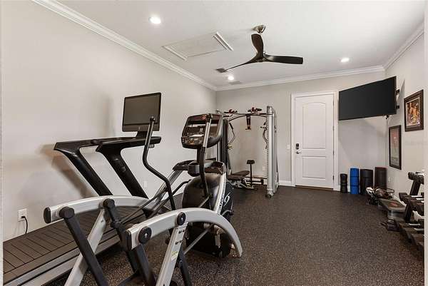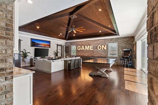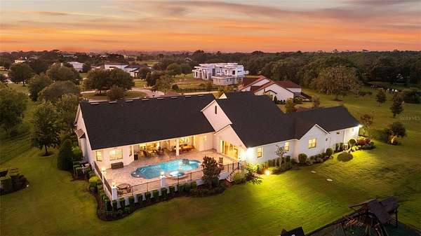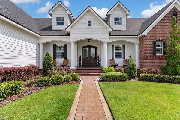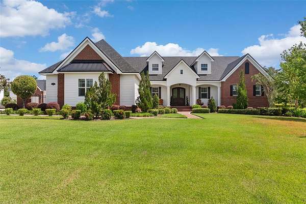 Discover timeless Southern charm and modern luxury in this single-story brick estate located in the prestigious guard-gated community of Stonelake Ranch. Built in 2017 on a private cul-de-sac, this home rests on a sprawling 2.53-acre parcel, set 50 feet above sea level with a desirable northwest-facing orientation. Offering nearly 5,900 sq. ft. of living space (8,890 sq. ft. total) with 5 bedrooms and 5 bathrooms, the residence blends elegance, comfort, and functionality. Inside, hardwood floors, crown molding, and thoughtful details define the living spaces. The gourmet kitchen features a large island with pendant lighting and seating for four, a farmhouse-style undermount sink, walk-in pantry, and a complete KitchenAid appliance package including a five-burner gas cooktop with pot filler and double ovens. Formal areas include a sitting room with three built-in desks currently used as a piano room, a private office with an exposed brick wall, and a dining room with a dramatic chandelier. The primary suite is a retreat with exposed beams, dual walk-in closets, and a spa-inspired bath featuring a clawfoot soaking tub, oversized walk-in shower with multiple shower heads, makeup vanity, and linen closet. The family room offers a gas fireplace, custom built-ins, surround sound, and triple pocket, sliding glass doors leading to the pool deck. Designed for entertaining, the home features a spacious bonus room with a wood-beamed ceiling, wet bar with wine fridge and icemaker, surround sound, and quadruple pocket sliders opening to the outdoors. A theater room and an indoor fitness center complete the lifestyle amenities. Outdoor living includes a sparkling pool and spa, outdoor fireplace, summer kitchen, and expansive paver deck with ample seating. Car enthusiasts will appreciate the garages: a climate-controlled three-car with two lifts (room for five vehicles), a secondary two-car with built-in cabinetry, plus a detached two-car. A basketball court, extended parking pad, and impressive driveway complete the property. Stonelake Ranch offers 680 acres of rolling landscape along Lake Thonotosassa, the county's largest lake at 880 acres. Community amenities include a lakeside lodge and fitness center, private boat launch and storage, tennis and pickleball courts, playground, equestrian trails, and a 100-acre preserve. Ideally located just 20 minutes from Downtown Tampa, the estate is convenient to Tampa International Airport, Lakeland Regional, Tampa General, Moffitt Cancer Center, and the VA Hospital, with Clearwater Beach only a short drive away. A rare opportunity to own a private estate that blends elevation, orientation, and elegance with Florida luxury. *Use Stonelake Gate address to navigate to property: 10400 Oak Canopy Jct, Thonotosassa, FL 33592*