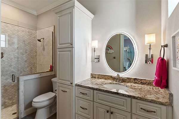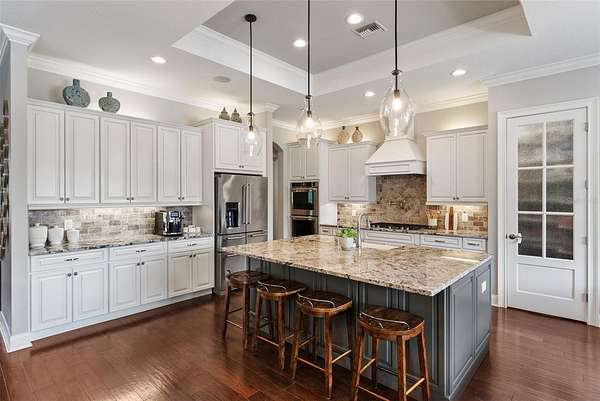 - Built-In Features, Crown Molding, High Ceilings, Stone Counters, Tray Ceiling(s), Walk-In Closet(s), Wet Bar