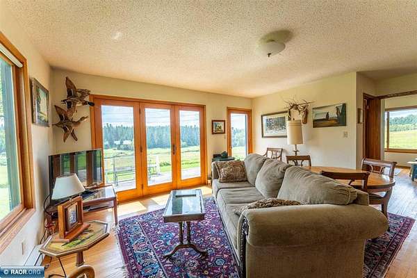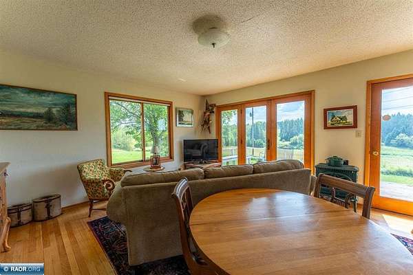 The Little Fork river is scenic and wild with areas of raging rapids and long stretches of remote, picturesque riverbanks. A variety of fish, birds and wildlife call the riverbanks home. This is your chance to own 135 acres,4750' of South facing beautiful, level river frontage, West of Orr in Koochiching County. The property has a mix of mature timber and open fields with groomed trails throughout. The charming, well maintained year round home has 2 main floor bedrooms & 1 bath, with original hardwood flooring in the living room and bedrooms. The upper level is an open concept bedroom. There is a detached 28x22' garage, a 40x55' pole building as well as numerous sheds. The property is beautiful, quiet, a secluded recreational getaway for hunting and snowmobiling. The property is being sold As Is.
