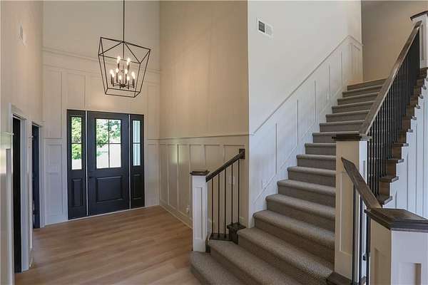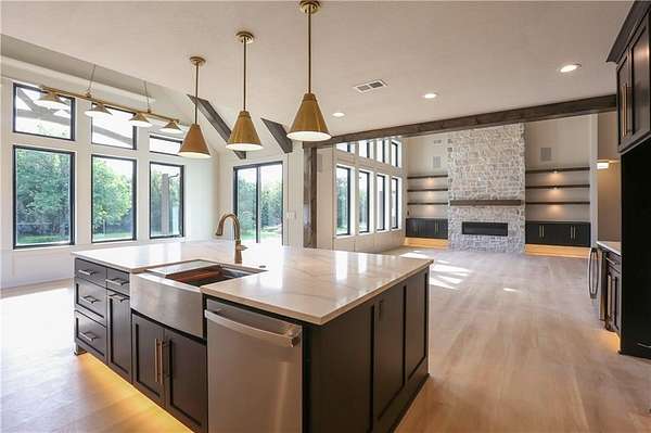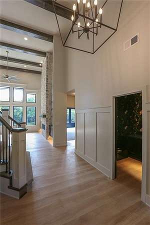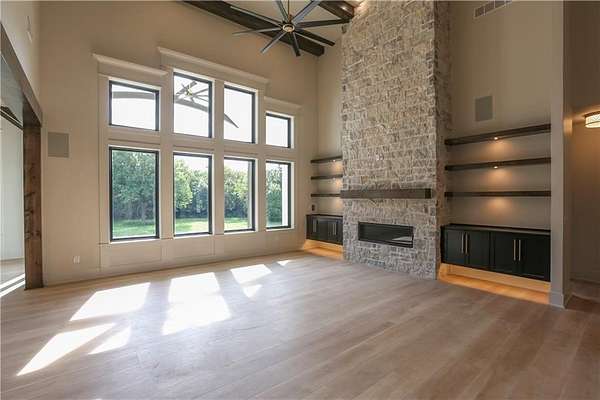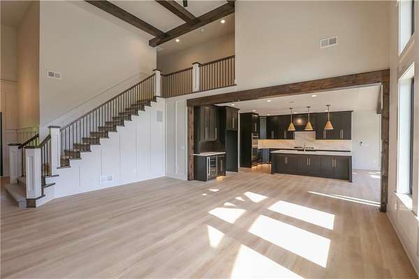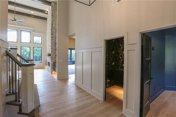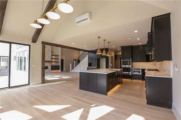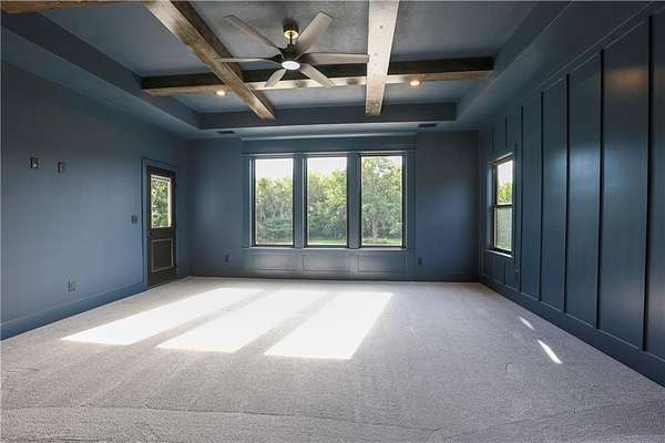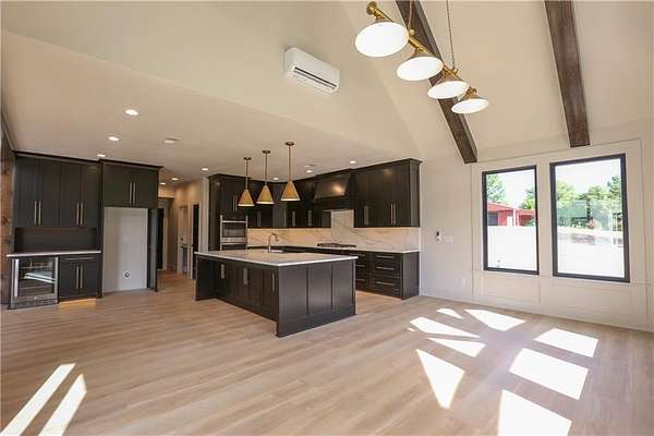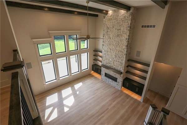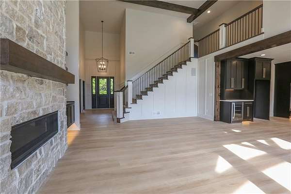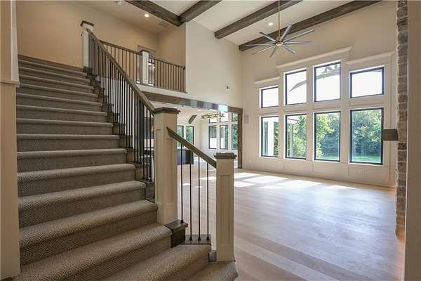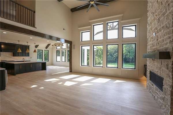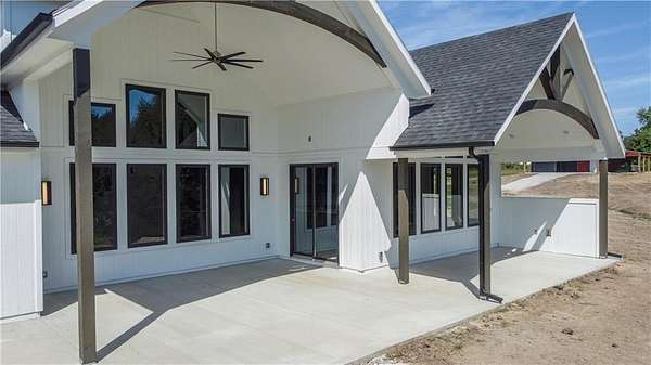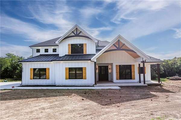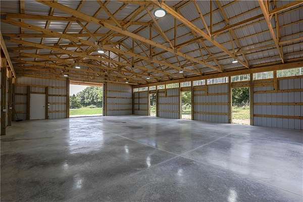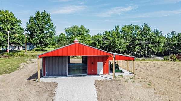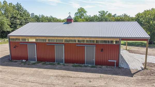 Luxury meets country living in The Westbrook by KC Custom Homes! This 1.5-story custom estate sits on 10+ rolling acres with a meandering creek and 12-ft deep pond. Featuring over 3,400 finished sq ft, the home showcases soaring 18-ft ceilings, a 40-ft wide great room, and a designer kitchen with oversized island, quartz counters, custom cabinetry, accent lighting, and a vaulted dining area. The main-level primary suite offers a spa-like bath with freestanding tub, tiled walk-in shower, and custom walk-in closet, plus a private office and designer half bath. Upstairs, 3 bedrooms each include en-suite baths and walk-in closets. Designer details throughout: exposed wood beams, tall trim, wainscoting, feature walls, curated lighting, and cedar arches with LED up-lighting. Outdoor living includes a cathedral-ceiling front porch, covered patio, and outdoor cooking area with gas/electric hookups. A new 40'x50' barn offers a concrete floor, full power, two 15' sliding doors, 3 horse doors, a 15'x50' lean-to, and 10' front overhang-perfect for livestock, storage, or workshop needs. Additional highlights: extra-deep garage, spray-foam insulation, sound-insulated walls, soffit lighting, in-wall Yamaha speakers, wired for generator/hot tub/security/future pond power, Tamko Titan shingles, HBW 210 warranty, and a full pet station with wash area, kennel, pet door & Dutch door. A rare opportunity to enjoy luxury living with country serenity just minutes from city conveniences.