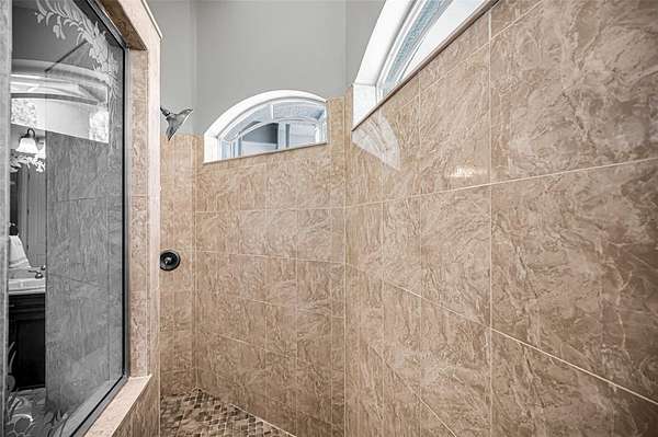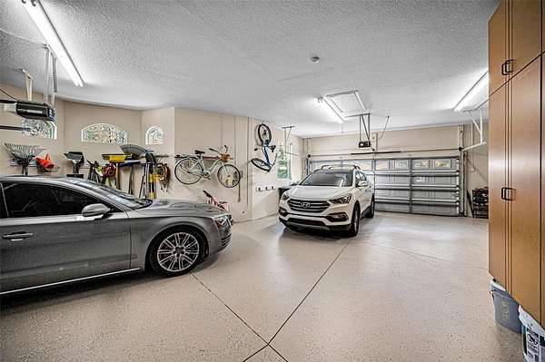 The expansive primary suite is a private retreat with a sitting area, spa-like bath featuring a jetted tub, walk-in tile shower, dual vanities with makeup station, and large walk-in closets. Additional highlights include freshly painted bedrooms, an oversized 4-car garage with newly sealed floors, and breathtaking conservation views throughout the property.