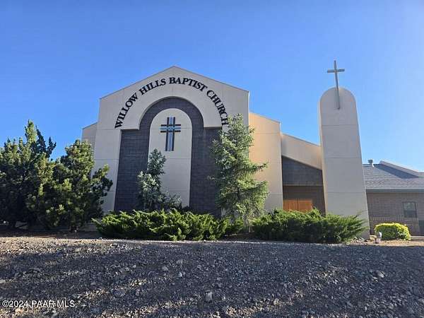 Prime Church / School Facility or Conversion Opportunity. Willow Hills Baptist Church, located in Prescott AZ, is a thriving religious community that recently purchase 19 acres of land 4 miles to the north and plans on building a larger campus to accommodate their growing community. This property is being offered for sale at $8,800,000 or $240/sf which is supported by a recent appraisal. Situated on 9.63 acres of SF-12 MH zoned land, the campus is located atop a hillside, which offers unobstructed, panoramic views Granite Mountain to the West and the San Francisco Peaks to the North. There is also good visibility to the +/-30,000 vehicles traversing Willow Lake Road. On-site parking can accommodate over 200 parking spaces with additional parking available via a graveled