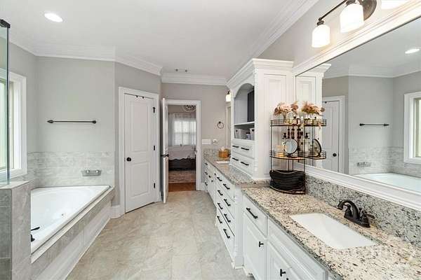 - Breakfast Area, Built-In Features, Cathedral Ceiling(s), Ceiling Fan(s), Double Vanity, Entrance Foyer, Fireplace, Garden Tub/Roman Tub, Gourmet Kitchen, High Ceilings, Jetted Tub, Kitchen Island, Main Level Primary, Pantry, Pull Down Attic Stairs, Recessed Lighting, Separate Shower, Tray Ceiling(s), Vaulted Ceiling(s)