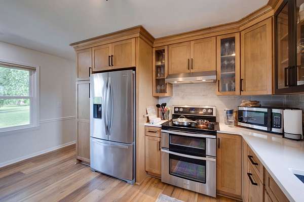- Dishwasher, Disposal, Double Oven, Dryer, Freezer, Ice Maker, Microwave, Range, Refrigerator, Stainless Steel Appliance(s), Washer
