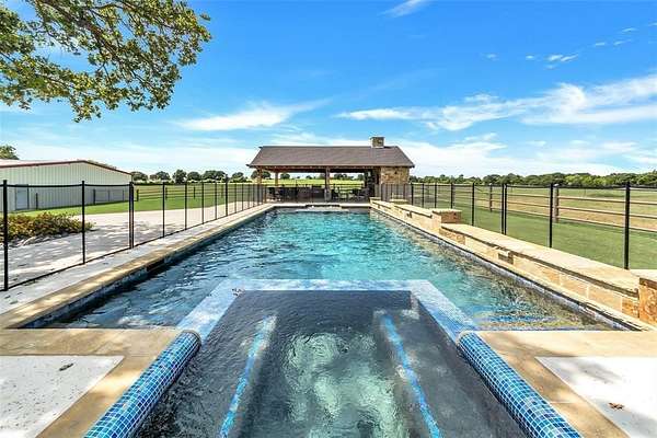 Est $15,019/moBeautiful 4 bedroom 3.5 bath home on 40 acres. Boyd ISD. Short drive to DFW airport and metroplex. Enjoy the incredible views from the large outdoor kitchen and pool area. Other great features include large shop, gated entrance, 1200 sq ft guest house, an outdoor fireplace, and a restroom in the outdoor kitchen area. There are two water wells on site and a sprinkler system. The interior has hard wood floors and big windows throughout the entire house. Cozy up in the living room by the fireplace while looking out at the beautiful pasture with 2 tanks.