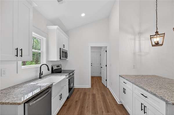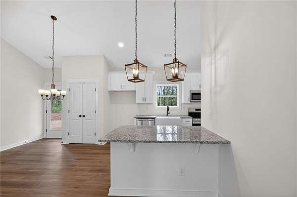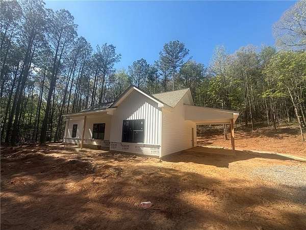 Construction is well underway on this rare, private 4-acre tract. Tucked away for maximum privacy, this spacious step-less ranch offers peaceful living with no HOA. Don't miss your chance to make it yours. This beautiful open-concept ranch features upgraded black exterior windows, a spacious family room with vaulted ceilings, and a custom shiplap fireplace that creates a warm, inviting atmosphere. The gourmet kitchen is designed for both everyday living and entertaining, complete with granite countertops, upgraded soft-close shaker cabinets, a farmhouse sink, stainless steel appliances, and a large pantry. The owner's suite offers a private retreat with a well-appointed ensuite bath, including a double vanity, custom tile shower, and a generous walk-in closet. Two additional bedrooms are comfortably sized with ample closet space and share a stylish full bathroom. Enjoy outdoor living on the covered back patio overlooking your private 4-acre homesite, perfect for morning coffee or quiet evenings. A charming rocking-chair front porch adds even more space to relax and unwind. The attached carport provides convenient covered parking along with additional storage options. Inside, a dedicated laundry room and mudroom bring everyday practicality to your routine. The home features luxury LVP flooring in the kitchen, living area, entry, and baths, with plush carpeting in the bedrooms. High-quality finishes are carried throughout. The exterior combines durable vinyl siding with metal window awnings and cedar accents that highlight the front porch and shutters. Enjoy the freedom of a private lot with no HOA restrictions, offering peaceful country living with easy access to nearby towns. Not quite the right floor plan? Additional plans and homesites are available. Be sure to ask about current incentives when using the preferred lenders. Please note: Interior and exterior photos are representative of the floor plan and not the actual home. Lot and drone photos reflect the current construction progress. Conveniently located just minutes from Cedartown, Rockmart, Aragon, Silver Creek, and Rome, this is a rare opportunity to create your dream home in a quiet, private setting. Don't miss it.