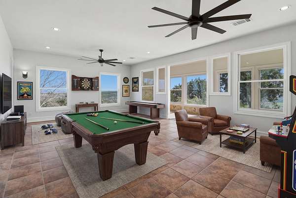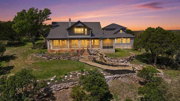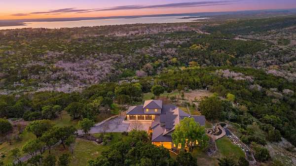 Perched atop a scenic hill, this exceptional property offers breathtaking panoramic views of the Texas Hill Country, including Lake Buchanan, Inks lake and Lake LBJ, along with stunning sunset vistas over the iconic Packsaddle Mountain. Paired with a deeded boat slip on Lake LBJ, this is Hill Country living at its finest - without compromise. Set on just under 13 acres and featuring nearly 6,000 sq. feet of living space, this luxury custom home provides unmatched privacy, space, and sweeping views for your family to enjoy. Unlike traditional lakefront properties, Mi Cielo offers convenient lake access via a short golf cart ride to the community marina - while avoiding the noise, congestion, and limitations often associated with waterfront living. This one-of-a-kind hilltop retreat combines seclusion, elegance, and functionality. Recent renovations enhance the home's appeal, while thoughtful features throughout the property elevate everyday living. Key Features Include: - Private elevator connecting floors -Terraced waterfall with koi pond -Perimeter fencing around 5 acres with with extensive landscaping and lighting -Hundreds of mountain laurel and other specialty trees -14 beautifully designed flower gardens and planters -Fenced dog run/children's play area incorporated to a rear home entry door -25 kW backup propane generator -Fenced vegtable garden -2,500 gal rainwater and 2,500 gal well water storage tanks -Interior sunroom/aviary -Safe room -Wildlife tax exemption *Owner is the Listing Agent