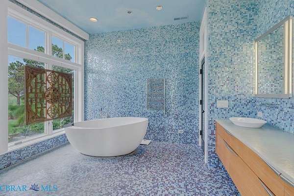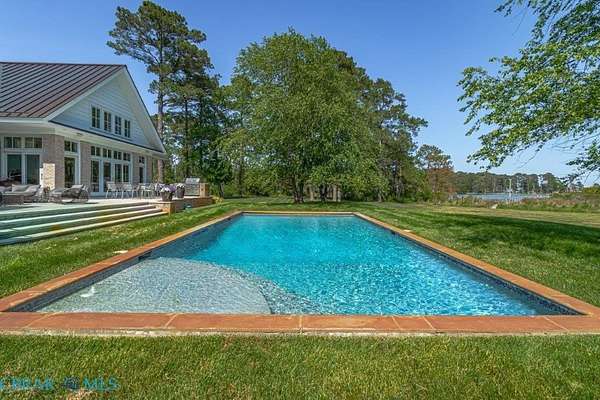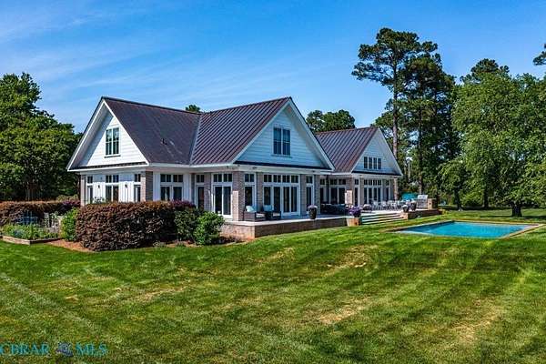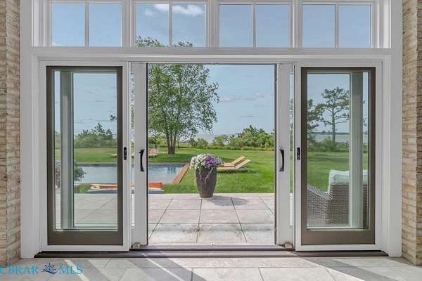 Welcome to an extraordinary waterfront retreat on Gwynns Island, offering sweeping views across Milford Haven out to the Chesapeake Bay. This custom-designed residence, completed in 2008, is thoughtfully planned to blend elegant living with the natural beauty of its coastal surroundings. Nearly every room showcases a stunning water view and is filled with natural light, creating an atmosphere of calm and luxury throughout. The home features heated Jerusalem limestone floors inside and out, a striking Chinese black granite wood-burning fireplace, dramatic floor-to-ceiling windows, and soaring two-story ceilings in the main living area. The gourmet kitchen is open to a spacious dining area and connects seamlessly to the screened porch and pool, making entertaining effortless. A comfortable family room with built-ins and a fireplace adds warmth and function. The first-floor primary suite is a private haven with three sides of waterfront views, offering both sunrise and starlit serenity. The en-suite bath includes a freestanding soaking tub, a walk-in multi-head shower, and private access to the outdoors. Upstairs, guests are welcomed with three additional bedrooms and two full baths, each designed for comfort and privacy. The property is equally impressive outdoors with a protected pier offering 4 feet MLW, perfect for boating. Enjoy a private sand beach, oyster gardening, crabbing, kayaking, a hydro tennis court, and an in-ground pool-all set within meticulously maintained grounds. A detached building provides flexible space with an office or hobby room on the first floor and a guest suite above, complete with a kitchenette, full bath, bedroom, and waterfront views. Located less than 10 minutes from Mathews Courthouse and within an hour of Williamsburg, Newport News, and Richmond, this is a true coastal sanctuary offering privacy, recreation, and timeless waterfront living.