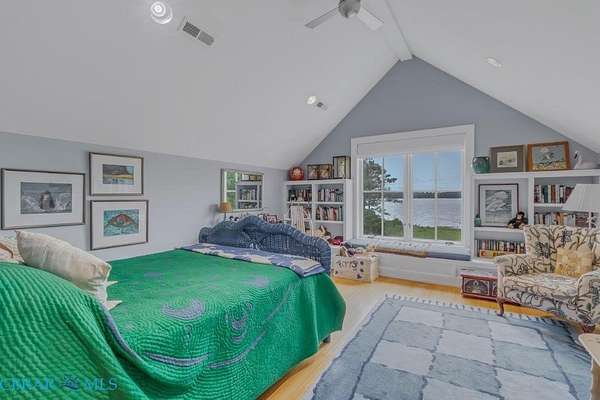 - Bookcases, Built In Features, Cathedral Ceilings, Ceiling Fans, Dining Area, Double Vanity, Eat In Kitchen, Fireplace, High Ceilings, Kitchen Island, Main Level Primary, Recessed Lighting, Solid Surface Counters, Walk In Closets
