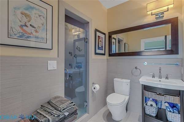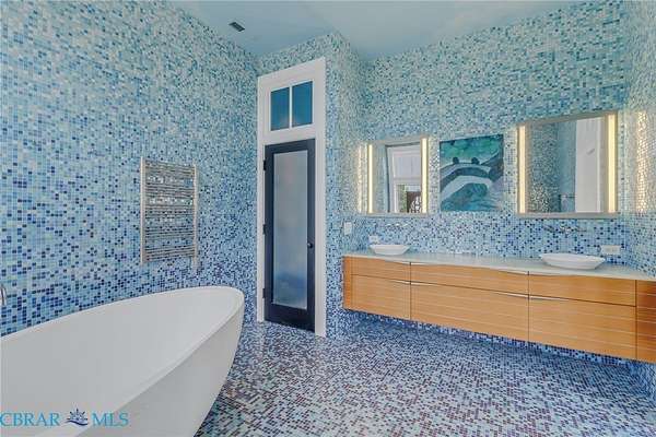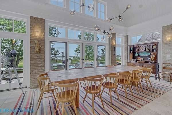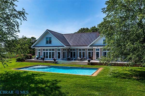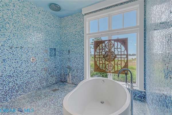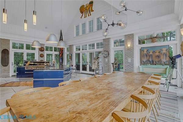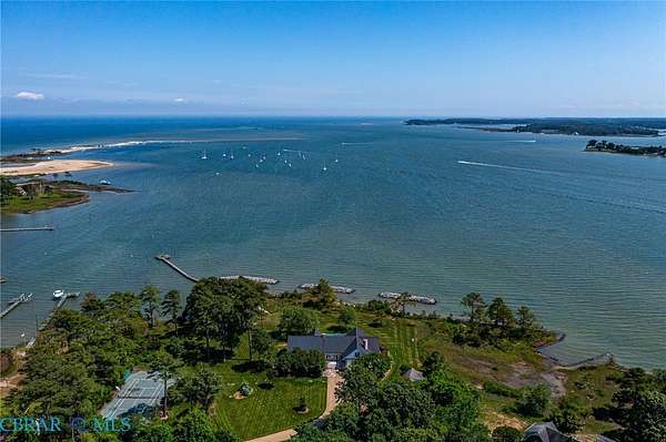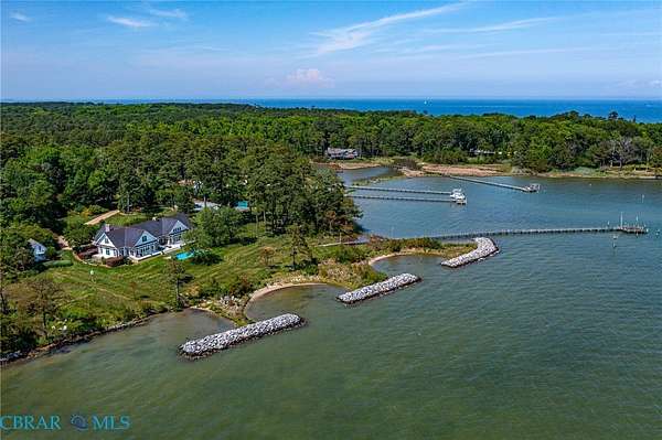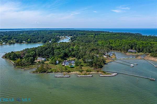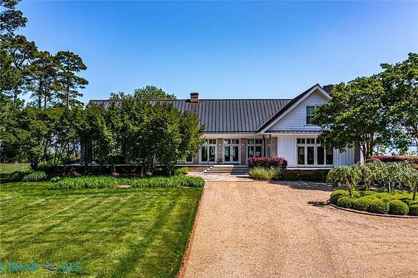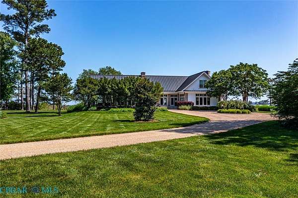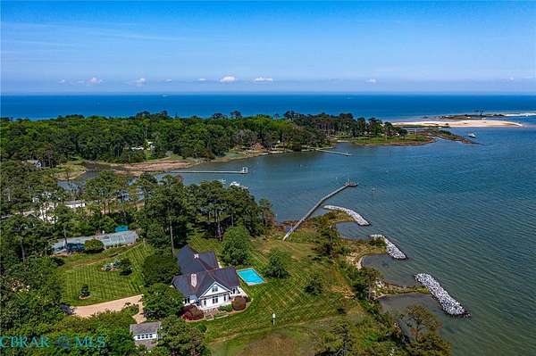 Welcome to an extraordinary waterfront retreat on Gwynns Island, offering sweeping views across Milford Haven out to the Chesapeake Bay. This custom-designed residence, completed in 2008, is thoughtfully planned to blend elegant living with the natural beauty of its coastal surroundings. Nearly every room showcases a stunning water view and is filled with natural light, creating an atmosphere of calm and luxury throughout. The home features heated Jerusalem limestone floors inside and out, a striking Chinese black granite wood-burning fireplace, dramatic floor-to-ceiling windows, and soaring two-story ceilings in the main living area. The gourmet kitchen is open to a spacious dining area and connects seamlessly to the screened porch and pool, making entertaining effortless. A comfortable family room with built-ins and a fireplace adds warmth and function. The first-floor primary suite is a private haven with three sides of waterfront views, offering both sunrise and starlit serenity. The en-suite bath includes a freestanding soaking tub, a walk-in multi-head shower, and private access to the outdoors. Upstairs, guests are welcomed with three additional bedrooms and two full baths, each designed for comfort and privacy. The property is equally impressive outdoors with a protected pier offering 4 feet MLW, perfect for boating. Enjoy a private sand beach, oyster gardening, crabbing, kayaking, a hydro-tennis court, and an in-ground pool, all set within meticulously maintained grounds. A detached building provides flexible space with an office and a guest suite above. Famed Richmond architect Charles Aquino designed the house, and his wife and collaborator Anna Aquino the fabulous gardens. This contemporary interpretation of historic Tidewater architecture and materials -- brick, stone, batten, and copper roof - is graced by over 300 feet of limestone terrace and over 250' of floor-to-ceiling glass walls and doors. With 60-90 mins to nearby RVA, Norfolk, Newport News, and VA Beach, and just 3 hours from the NOVA.