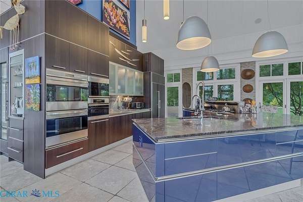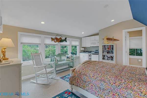 - Bedroom On Main Level, Bookcases, Built In Features, Cathedral Ceilings, Dining Area, Eat In Kitchen, Fireplace, Granite Counters, High Ceilings, Walk In Closets