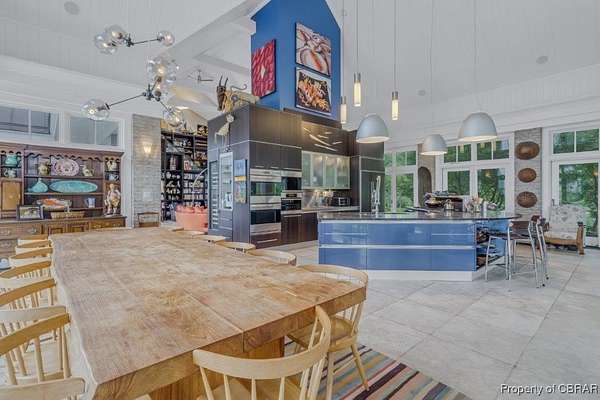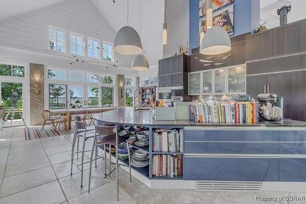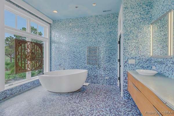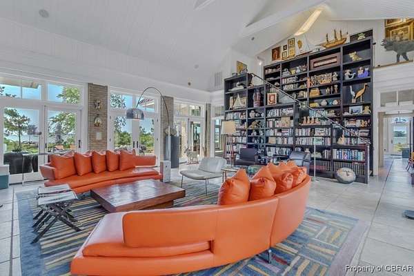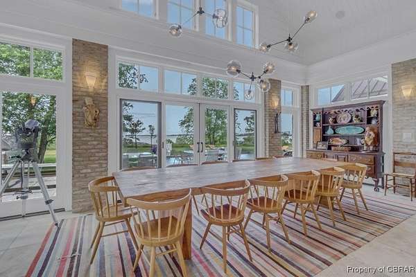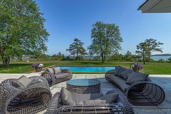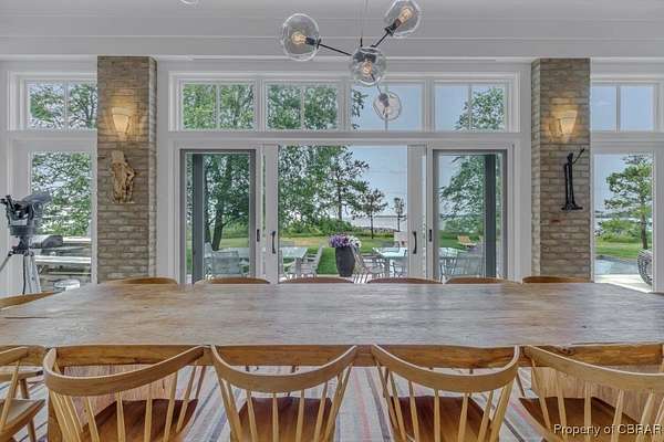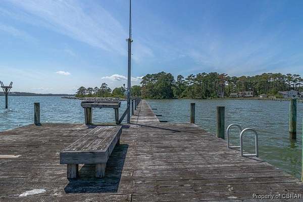 Welcome to an extraordinary waterfront retreat on Gwynns Island, offering sweeping views across Milford Haven out to the Chesapeake Bay. This custom-designed residence, completed in 2008, is thoughtfully planned to blend elegant living with the natural beauty of its coastal surroundings. Nearly every room showcases a stunning water view and is filled with natural light, creating an atmosphere of calm and luxury throughout. The home features heated Jerusalem limestone floors inside and out, a striking Chinese black granite wood-burning fireplace, dramatic floor-to-ceiling windows, and soaring two-story ceilings in the main living area. The gourmet kitchen is open to a spacious dining area and connects seamlessly to the screened porch and pool, making entertaining effortless. A comfortable family room with built-ins and a fireplace adds warmth and function. The first-floor primary suite is a private haven with three sides of waterfront views, offering both sunrise and starlit serenity. The en-suite bath includes a freestanding soaking tub, a walk-in multi-head shower, and private access to the outdoors. Upstairs, guests are welcomed with three additional bedrooms and two full baths, each designed for comfort and privacy. The property is equally impressive outdoors with a protected pier offering 4 feet MLW, perfect for boating. Enjoy a private sand beach, oyster gardening, crabbing, kayaking, a hydro tennis court, and an in-ground pool-all set within meticulously maintained grounds. A detached building provides flexible space with an office or hobby room on the first floor and a guest suite above, complete with a kitchenette, full bath, bedroom, and waterfront views. Located less than 10 minutes from Mathews Courthouse and within an hour of Williamsburg, Newport News, and Richmond, this is a true coastal sanctuary offering privacy, recreation, and timeless waterfront living.