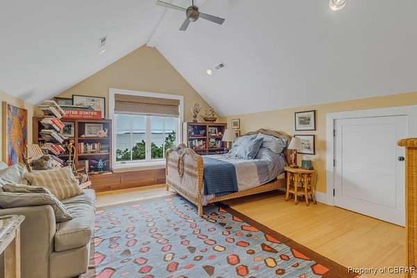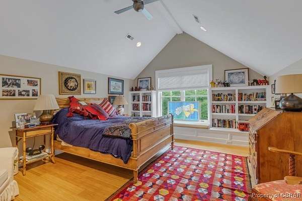 - Bookcases, Built In Features, Cathedral Ceilings, Ceiling Fans, Dining Area, Double Vanity, Eat In Kitchen, Fireplace, High Ceilings, Kitchen Island, Main Level Primary, Recessed Lighting, Solid Surface Counters, Walk In Closets