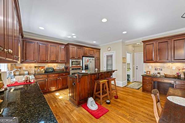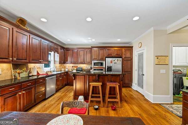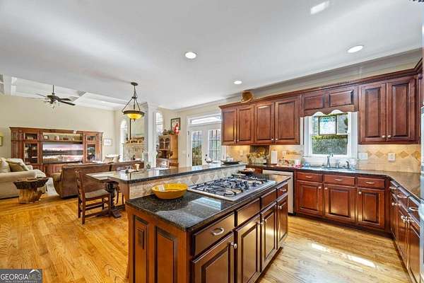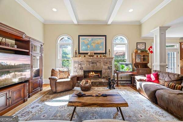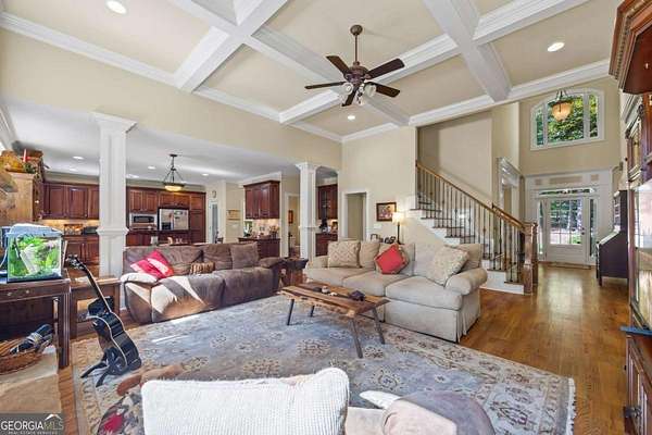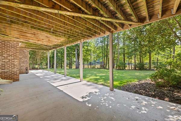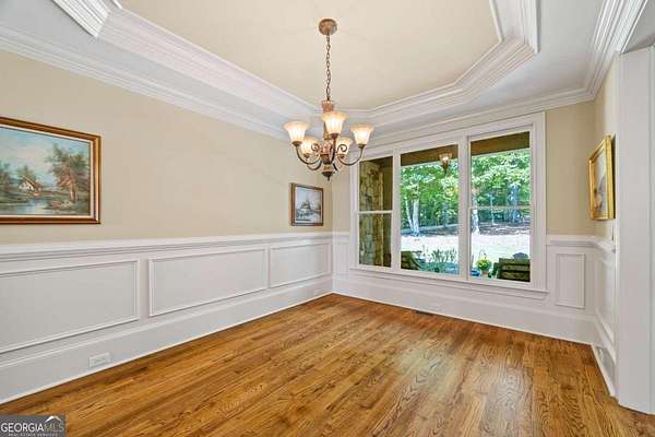 Elegance on the lake! This wonderful property sits on approximately 2 acres on the lake in Lane Creek . It has four bedrooms and three and 1/2 baths, with the primary bedroom on the main level. First thing you notice is the fantastic landscaping and stone accents on this all brick home. Once inside you notice the vaulted great room with a stone fireplace . French doors open to an oversized deck overlooking the sloping backyard and Lake. The primary bathroom features an oversized jetted tub, and shower. The kitchen has everything you would expect, with lots of cabinets and an island .and is open to the great room. The basement is unfinished. You will appreciate the fenced in backyard, a large storage building, and a fire pit overlooking Lake. Lane Creek subdivision features a fantastic golf course, community pool, tennis and playground. The home has 3592 heated square feet and a unfinished basement of 2164 square feed verified by an appraisal