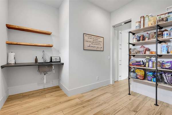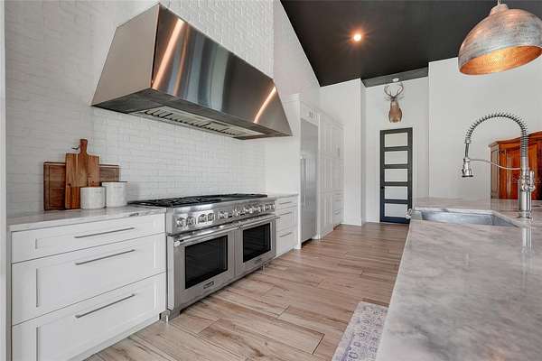 Designed with both style and function in mind, the home features a chef-inspired kitchen with Thermador commercial-grade gas appliances, a hidden walk-in butlers pantry, and an oversized marble waterfall island that anchors the open-concept living space. Cozy up beside the stunning wood-burning gas fireplace, perfectly positioned to complement the home's warm, modern farmhouse aesthetic. Every detail speaks of craftsmanship--from live-edge wood accents and crystal light fixtures to the home's most delightful surprise: hidden doors that add a touch of magic and character you have to see to believe!