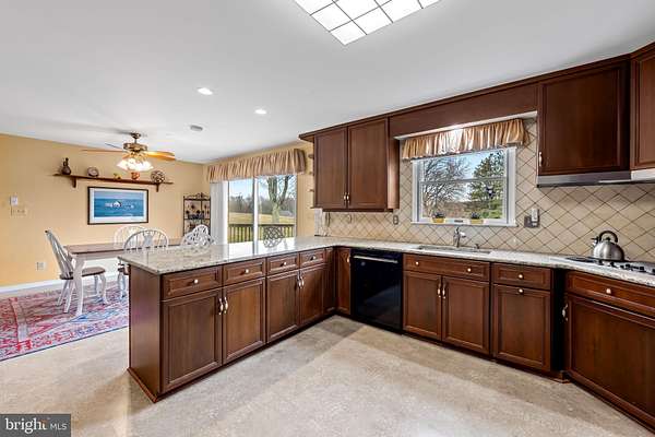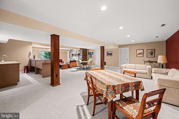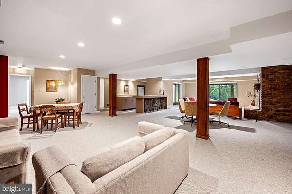Tucked at the end of a quiet cul-de-sac, this expansive brick home offers a rare sense of space, privacy, and flexibility, set against a backdrop of rolling lawns and mature trees. Designed for both gathering and quiet moments, the main level flows beautifully from formal living spaces to more relaxed areas, including a large family room centered around a striking wood-burning stone fireplace and wet bar. An eat-in kitchen with breakfast area opens to the outdoors, while a dedicated office (or additional bedroom) , laundry room, and half bath add everyday ease. The main-level primary suite is a true retreat, featuring an en suite bathroom and two walk-in closets, allowing for comfortable first-floor living while still leaving plenty of room for family and guests elsewhere in the home. Upstairs, three generously sized bedrooms and two full baths provide privacy and flexibility, along with abundant storage throughout. The finished lower level expands the living space even further, offering a welcoming recreation area with a second fireplace and wet bar, an additional bedroom and full bath, and multiple bonus rooms ready to adapt as a gym, studio, hobby space, or future finished living areas. Whether hosting large gatherings or creating spaces tailored to your lifestyle, this level offers endless possibilities. Outdoor living is just as inviting, with composite rear decks and a covered patio overlooking the landscaped yard and surrounding natural setting. Three separate heating and cooling zones ensure year-round comfort throughout the home. Located within a gated community and just steps from walking trails leading to Loch Raven Reservoir, this home offers a peaceful connection to nature while remaining close to everyday conveniences.