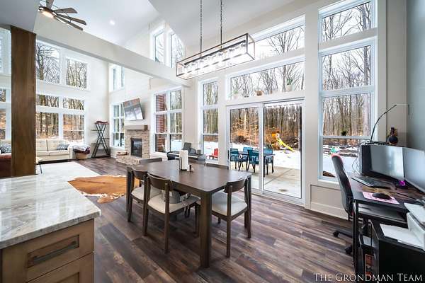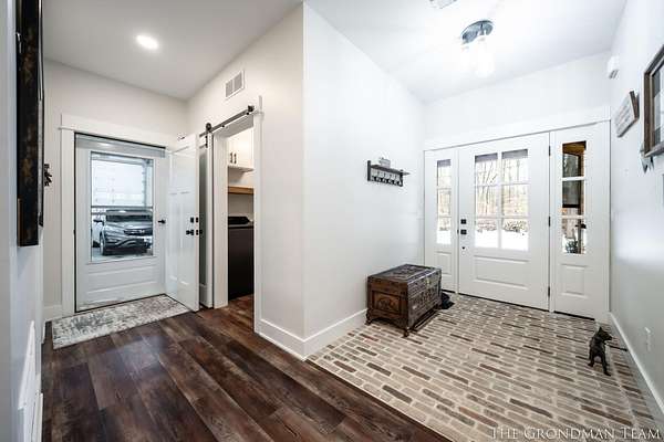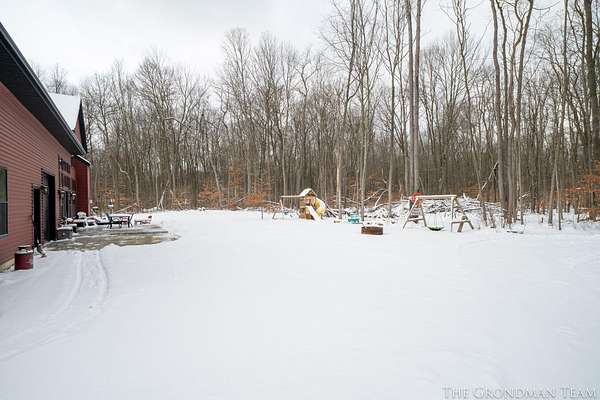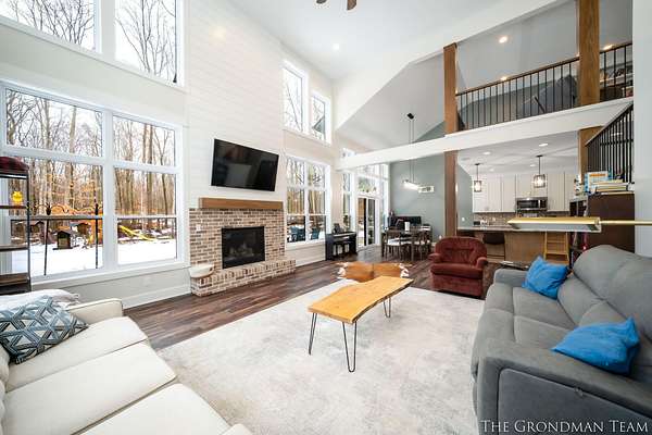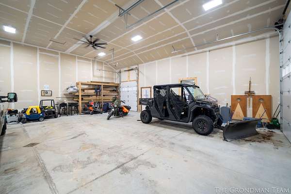see more!! Custom stick-built barndominium on 10 private wooded acres in Grand Haven, built in 2023 with exceptional craftsmanship and thoughtful design throughout. This 4-bedroom, 2.5-bath home offers a rare blend of modern comfort, functional living space, and outstanding garage capacity. The main level features an open-concept layout with soaring ceilings, an open-to-below great room, expansive windows, and a cozy fireplace that anchors the living space. The kitchen is designed for both everyday use and entertaining, highlighted by a large center island, quality finishes, and seamless flow into the dining and living areas. A main-floor primary suite provides convenience and privacy, complete with a spacious walk-in closet and a well-appointed ensuite bath featuring tiled shower, and soaking tub. Upstairs offers additional bedrooms, a full bath, and a loft-style family room overlooking the main living areaideal for a second living space, home office, or play area. A standout feature of the property is the heated garage spanning over 2,000 square feet, equipped with oversized doors, high ceilings, and ample room for vehicles, recreational toys, a workshop, or serious storage. The garage is fully integrated and designed for year-round use. Outdoor living includes a large concrete patio overlooking the wooded setting. The property is surrounded by mature hardwoods with established trails throughout, offering exceptional privacy and a peaceful, up-north feel. A long private drive sets the home back from the road, creating a true sense of seclusion without isolation. Built with intention and quality, this property offers acreage, privacy, and modern constructionan uncommon combination in today's market.