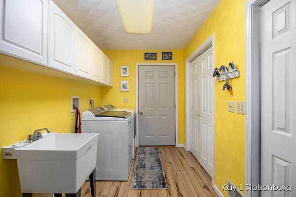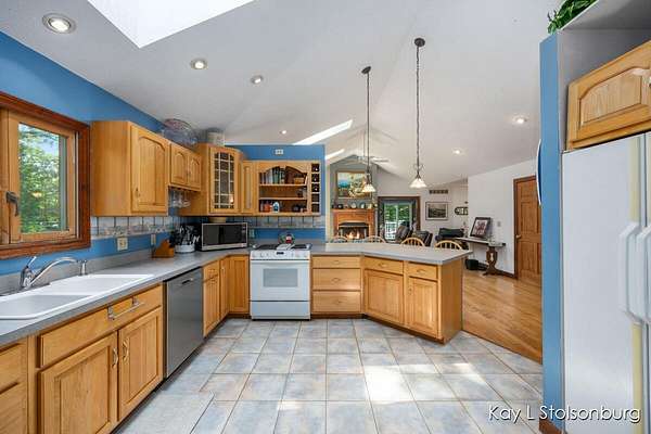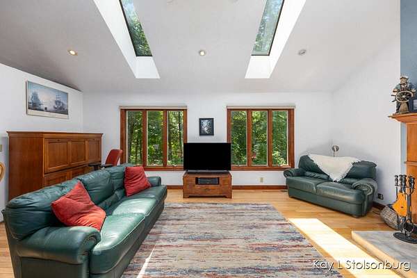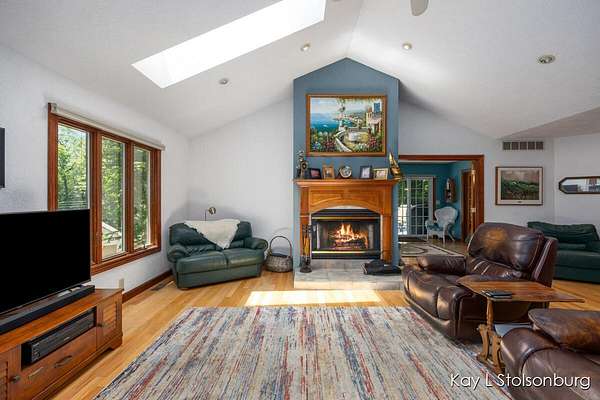 Imagine that you could design your dream home and found that someone already did. This one owner home features a huge vaulted ceiling over the spacious living areas...great room w/ hardwood floors formal dining room & kitchen w/Hickory Mouser cabinets. The primary suite includes plenty of space + walk-in closet, & bath w/Jacuzzi tub. The Anderson windows offer amazing views that change with the seasons. The fireplace is woodburning with a gas line nearby. There are wonderful views of Gun Lake all year long. There is an additional bedroom & bath + laundry on the main floor. The 3 + car garage has an 11 ft ceiling, & a 10 ft door. Downstairs you'll find a 2nd living area with kitchen, living rm, bath, bed, 2nd laundry hook-up and office space.