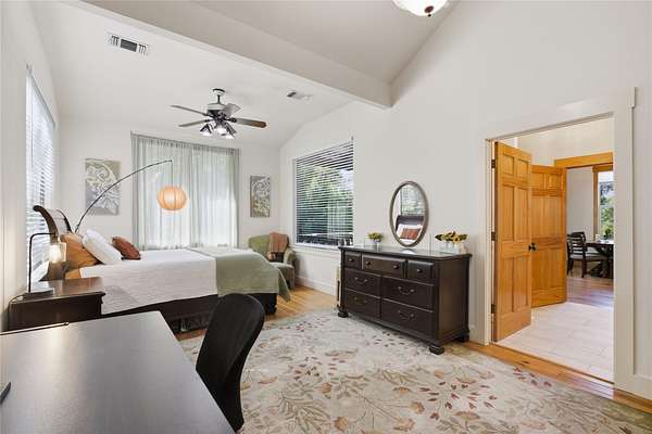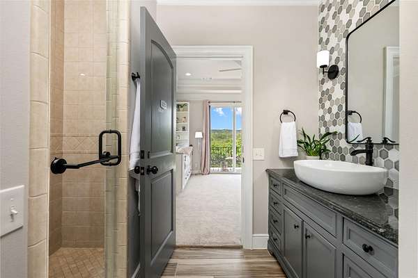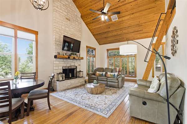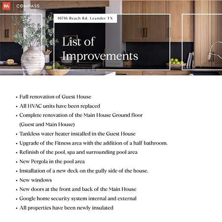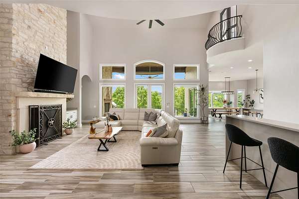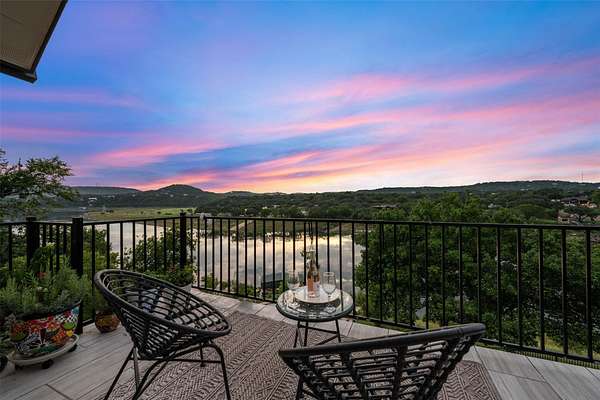 A Luxury Waterfront Estate on Lake Travis with two homes, three sunset decks, private boat dock and over $1M in custom renovations. Enjoy a daily swim in the pool surrounded by luscious gardens, a nearby shaded pergola for meals and a cozy firepit perfect for creating those special memories with your family and friends! The main balcony has a wood burning fireplace & grill. It is a perfect spot to relax in the evening as the breeze comes through and the boats quietly pass by! The main home includes a personal gym with an added half bath, secondary primary suite upstairs, two offices and a guest bedroom. This luxury waterfront estate was built for entertaining and relaxing in style! Guest house is an income producing AirBnB with over 100 5 STAR Reviews. The loft is currently used as second bedroom. Income docs, renovations, virtual tour & floorplans available! Property is in the Leander ETJ & doesn't require permitting for STR!