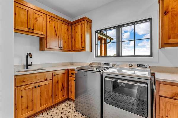 Stunning custom home offering the beauty of country living with all the amenities of the city just minutes away. These owners meticulously designed this to be their forever-dream home however work relocation has created an opportunity for new owners to enjoy this like-new property without all the stress of building. Located on a private culdesac with 4 bedrooms, 3.5 baths, 4325 SQFT, office, 3-season room with fireplace, game room, finished basement, walk-in pantry, and a laundry room on both floors. Vaulted ceilings, 7' doors, large kitchen island with built-in sonic ice machine, custom cabinets, GE Cafe appliances, main level primary suite with heated bathroom floors, heated wet room/shower with tub, and large closet with built-ins. Finished daylight basement with family room, 2 bedrooms, wetbar, and lots of storage. Enjoy low utility costs due to a geothermal heating/cooling system and spray foam insulation. Also included is a whole-house backup natural gas generator. Outside features include an irrigation system, 250 foot paved driveway, security cameras, 3-car garage with a min-split heating & cooling system and water fountain. There is also a gravel pad with utilities ready for the addition of an outbuilding. This is truly a must see home, schedule your private showing today!