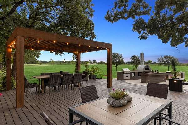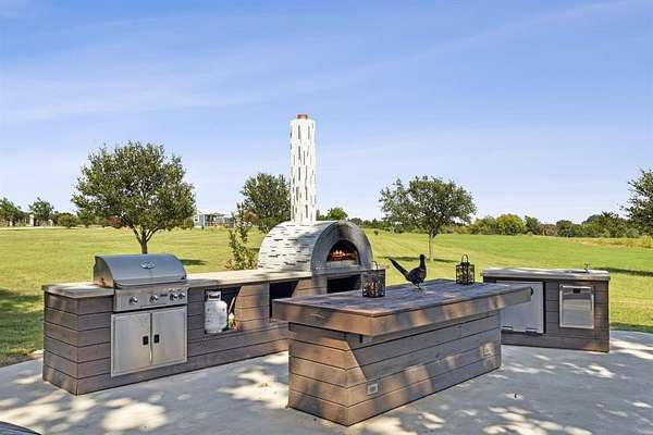 Step outside into a resort-style outdoor experience, where luxury & leisure come together. Multiple covered balconies & patios invite you to unwind while taking in the tranquil views. The expansive outdoor kitchen is fully equipped w a built-in grill, sink, refrigerator, & an authentic wood-fired pizza oven--perfect for entertaining on any scale. Enjoy dining beneath the stars, host weekend gatherings w ease, or simply relax in the peaceful ambiance of the natural surroundings.