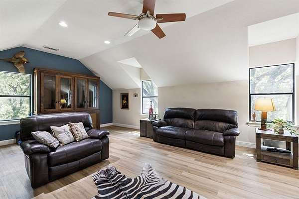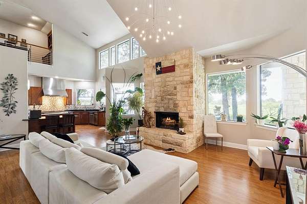 Tucked beneath a canopy of majestic oaks and set behind a private gated entrance, this extraordinary stone and masonry estate spans 16 pristine acres--offering an unmatched blend of privacy, elegance, and recreational living. Fully fenced and thoughtfully designed, this one-of-a-kind property is a true sanctuary where luxury meets the land. Over 4,100 SqFt custom residence is masterfully designed w soaring ceilings, expansive picture windows, & a light-filled open-concept layout that effortlessly blends grandeur w comfort. At the heart of the home, a gourmet kitchen impresses w premium appliances, rich custom cabinetry, & an oversized island.