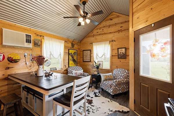 The grounds are equally impressive, offering a harmonious mix of open pasture & shaded wooded trails, ideal for horseback riding, hiking, or quiet exploration. Outdoor enthusiasts will appreciate the state-of-the-art trap shooting station, a private fishing area, & the abundance of native wildlife that roam the land--including deer, turkey, ducks, & geese. The estate includes a separate guest cabin, ideal for visitors or private retreats.