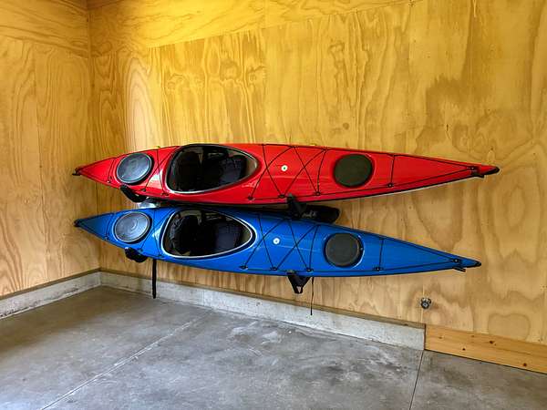 The boathouse has a new steel roof in 2023 and is used for kayak and canoe storage but has the look of a man cave or workshop potential.