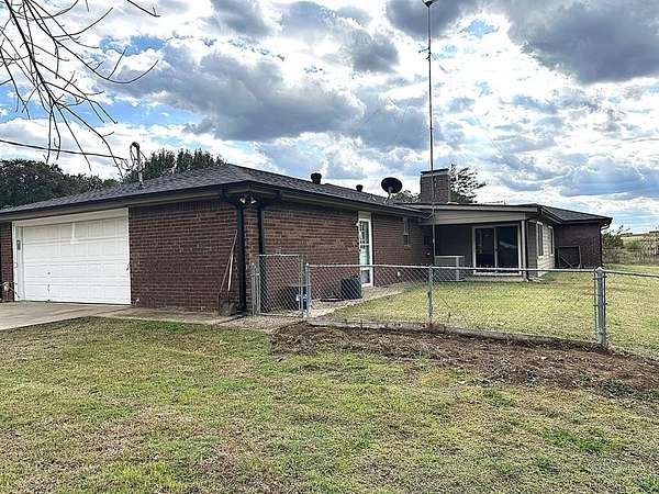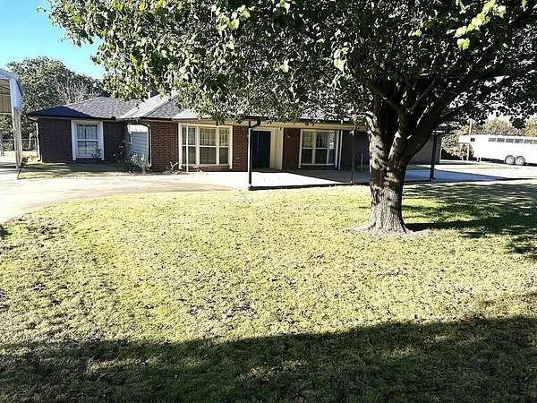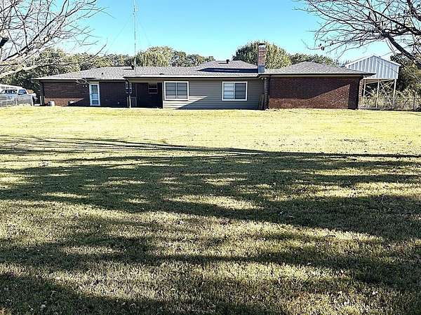 The kitchen is spacious and is totally electric with a large walk in pantry. The primary bedroom offers two vanities with a large shower, and tankless hot water heater. The primary bedroom has an exit to an enclosed sitting room that also has access to the den. There is another room off of the kitchen that would serve as an office or whatever you would choose. Outside the home you have a convenient RV shed with concrete floor and electric and sewer hookup. The circle drive all concrete will allow your guest easy access to come and go. The backyard is large and has a chain link fence to secure pets. There are 2 wells to supply water for the home and underground sprinkler system. A 1200 square foot barn with concrete floor and pipe frame is just another added feature along with pecan trees and more. Also this home has an abundance of storage. Bring your livestock and invite your friends there is plenty of room here at this place. Call for a showing.