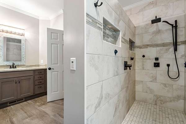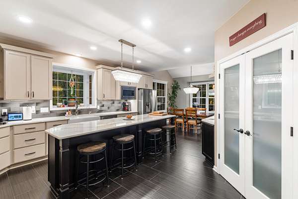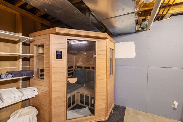 - Ceiling Fan(s), Center Island, Eat-In Kitchen, Garage Door Opener, Pantry, Sauna, Wet Bar