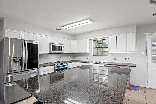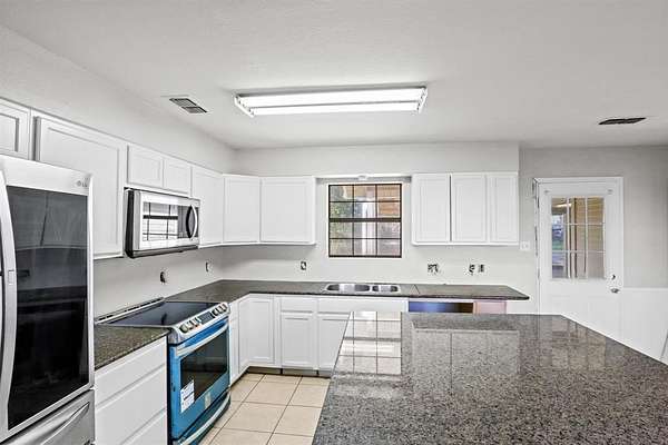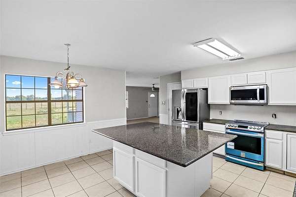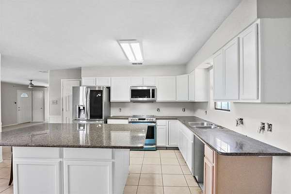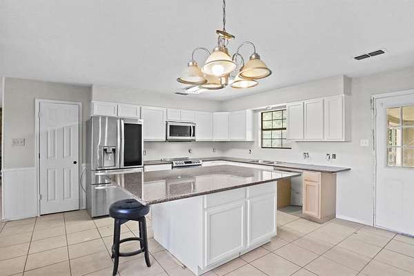 - Decorative Lighting, Eat-In Kitchen, Granite Counters, Kitchen Island, Open Floorplan, Pantry