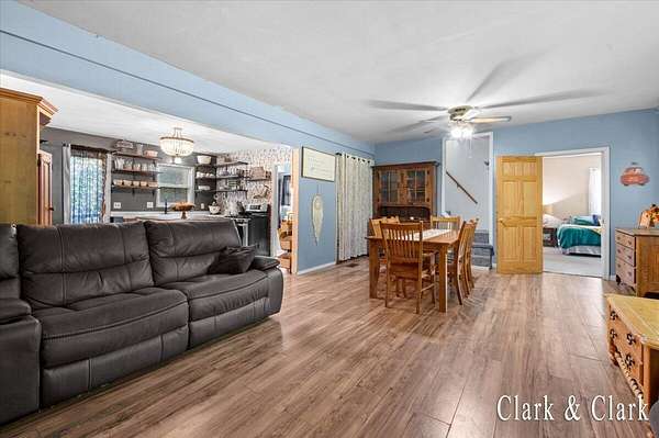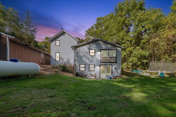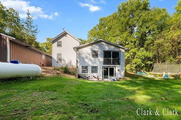 Set on 2.9 private acres, this 3-bed, 2-bath home checks every box- main-floor primary, walkout basement, 24x30 pole barn, solar panels, and brand-new furnace (2024) for year-round comfort. The primary bedroom features an XL walk-in closet currently used as a non-conforming 4th bedroom that's perfect for an office or guest space. The open living space is perfect for entertaining while two additional bedrooms upstairs offer separation and privacy. The walkout lower level adds a second bathroom with laundry and open space with room to finish a rec room, gym, studio, or additional storage. Outdoors, enjoy a secluded backyard with an above-ground pool, expansive lawn for gardening and play in the wooded acres. The pole barn is ideal for a garage, workshop, or toy storage. Energy-smart solar helps offset electric costs for budget-friendly living. Quiet, country feel with convenient access to town, schools, and shopping. Seller will review highest and best at 2PM Friday, Oct 3.