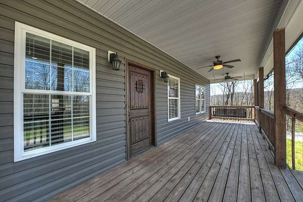 Experience peace, privacy and MOUNTAIN VIEWS on this rare 19.89 acre property bordering State of Georgia DNR land-perfect for nature lovers seeking peaceful, wooded setting.The meticulously maintained 3BR/3.5BA home blends rustic charm with modern comfort, featuring open concept living room, kitchen with stainless steel appliances with granite countertops and spacious laundry room. The main level offers two en-suite bedrooms with half bath. Walk up to unfinished attic space area that could be easily finished for more square footage to enjoy, while the terrace level features a living room with a beautiful stone fireplace, kitchenette, full bath and the third bedroom perfect for guest or mother-in-law suite with a 2 car basement garage. Great front and back yard for entertaining family and friends. This makes this an ideal full-time residence or second home. This property is in the Gilmer County land conservation. Bonus: full-time residents over 65 are exempt from school tax.