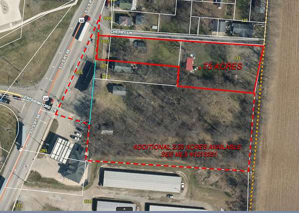 Check out this incredible real estate opportunity in Urbana, where you'll find not one but two lots available for sale, each zoned R-2. These lots present a unique chance to shape your vision in a prime location near one of the city's busiest intersections, providing a high traffic count and excellent visibility. Both parcels total .75 acres. The front lot is 1073 S. Main (K48-25-11-02-31-008-00) and is .25 acres and features an older, 20X20 garage. The back lot is 133 Cherry Lane (K48-25-11-02-31-009-00) is .50 acre and features a 12x32 barn/storage building. The lots are on the corner of South Main and Cherry Lane with road frontage on both Streets. The neighboring property to the South of the subject property has 3 parcels in total and is For Sale. Those parcels include 1071 S. Main and 1075 S. Main, and they provide an additional 2.53 acres in total for all 3 parcels. 1075 S. Main includes a rental home, and 1071 S. Main has 2 additional structures. If both listings were purchased, the total acreage would be 3.28 acres at a highly visible intersection. Depending on the new owner's use/vision, rezoning and variances would be needed. The neighboring parcel, # K48-25-11-02-31-012-00, that is for sale, is zoned B-2. Bring your vision and development it right here near the intersection of US Hwy 68 and State Route 55.