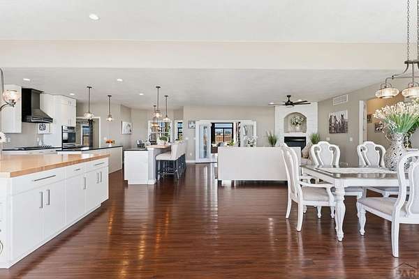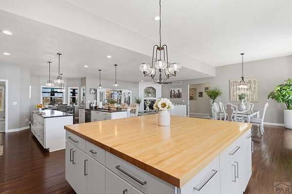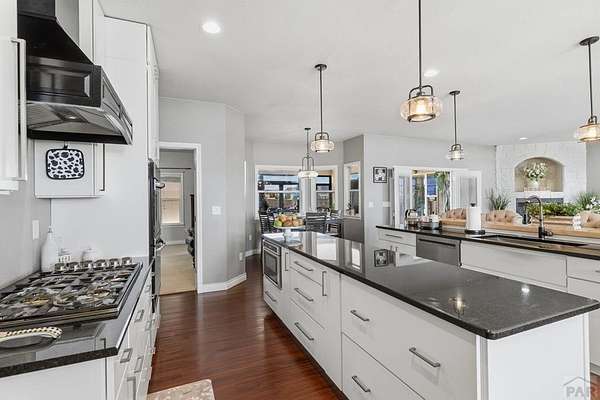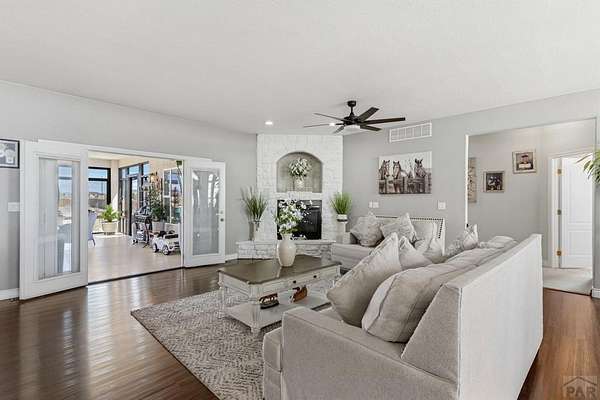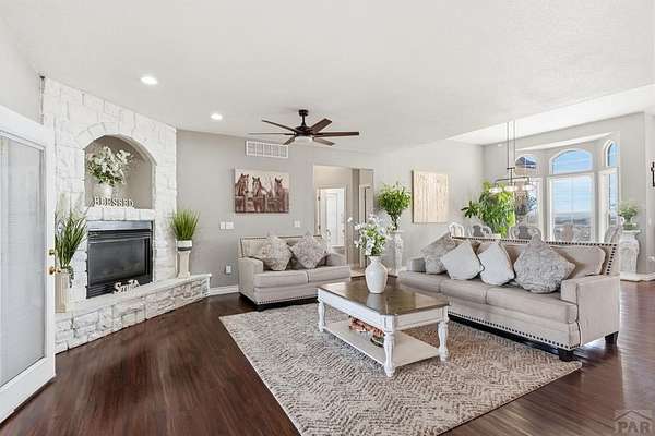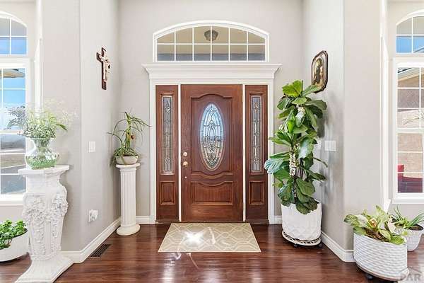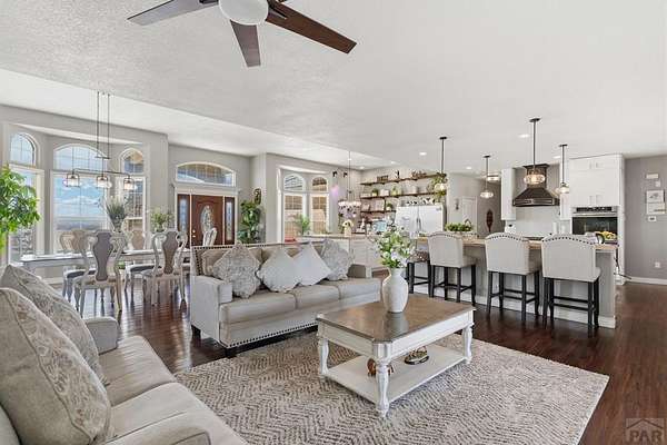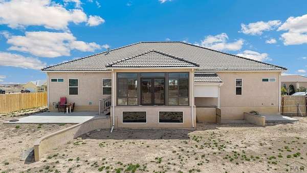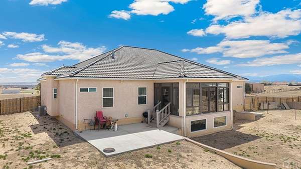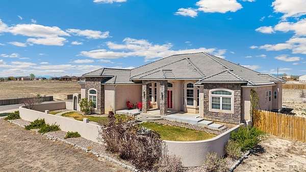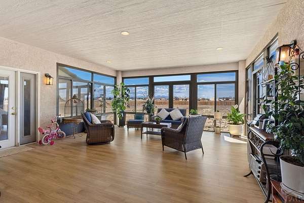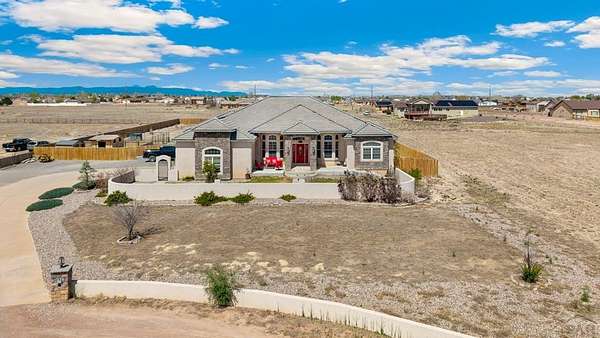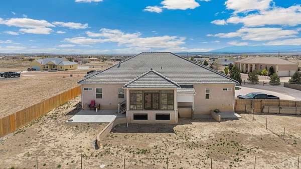 Stunning, spacious home situated on a 4.85 parcel with great views and open space. Property is completely fenced and available for horses, cows, etc. Step into approximately 5500 square feet of space that features 4 spacious bedrooms and 4 bathrooms. Home has spacious kitchen and storage plus a gorgeous sunny enclosed all season room in the back. You have formal dining and breakfast nook in the kitchen. Two suites on the main level with 5-pc bathroom each. The large finished basement provides 2 bedrooms, a wet bar and a walkout to a covered outdoor patio. Great views of the mountains; close proximity to shopping, restaurants and Pueblo Reservoir. Home also provides a 3- car garage, RV parking and it's located on a cul-de sac. Come check out this beauty soon.