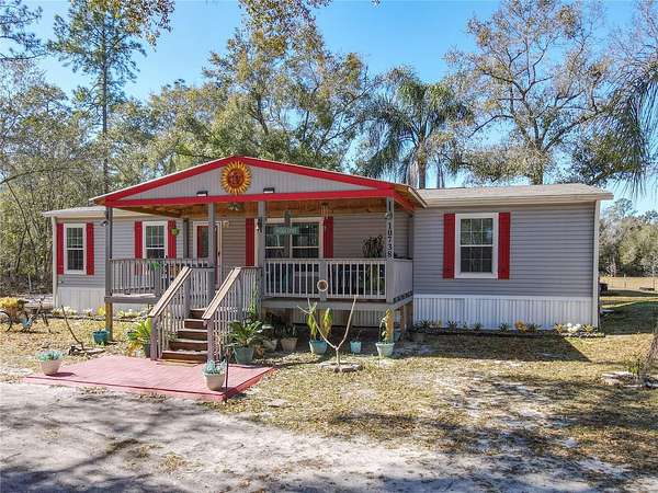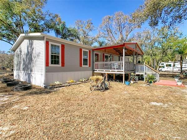 Welcome to 10738 Country View Dr, Lakeland, a peaceful retreat offering over 4 acres of land perfect for those who value privacy, relaxation, and nature. This property features a 2022 manufactured home with a bright open-concept layout, luxury vinyl flooring, 3 spacious bedrooms, 2 full bathrooms, and a dedicated laundry room. The large deck is ideal for enjoying Florida's beautiful weather and serene surroundings. The property also includes an electric gated entrance, adding an extra level of privacy and security. In addition, the property includes an impressive 24 ft x 50 ft storage building with 17 ft ceilings, built in 2023, offering ample space for equipment, vehicles, or workshop use. Recent upgrades provide peace of mind and comfort, including a reverse osmosis water filtration system and water softener (2023), a septic tank cleaned in 2024, and a new drain field installed in 2024. No HOA no CDD.