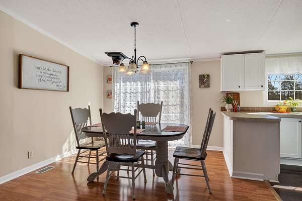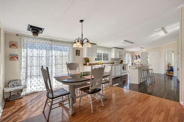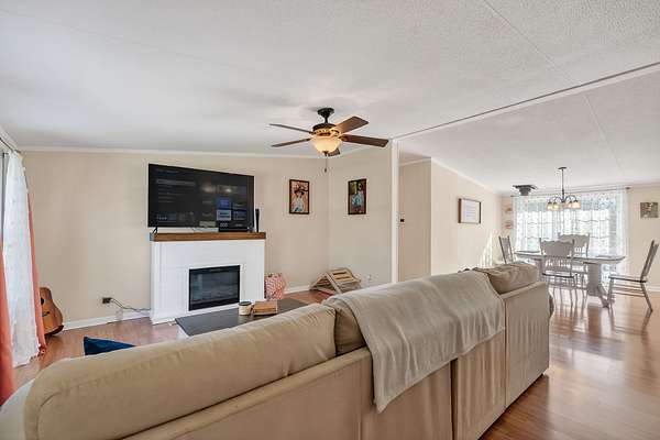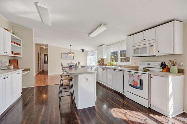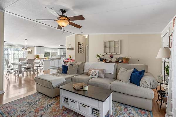 The kitchen opens directly into the main living and dining areas, creating a spacious feel that works well for everyday living and entertaining. The split bedroom layout offers privacy, with a comfortable primary suite and two additional bedrooms on the opposite side of the home.