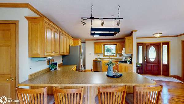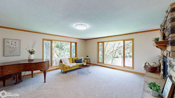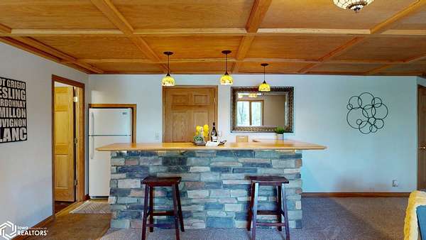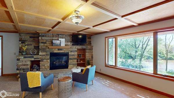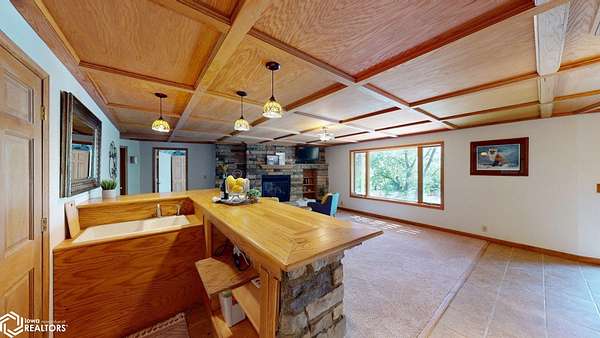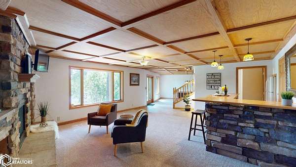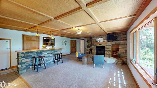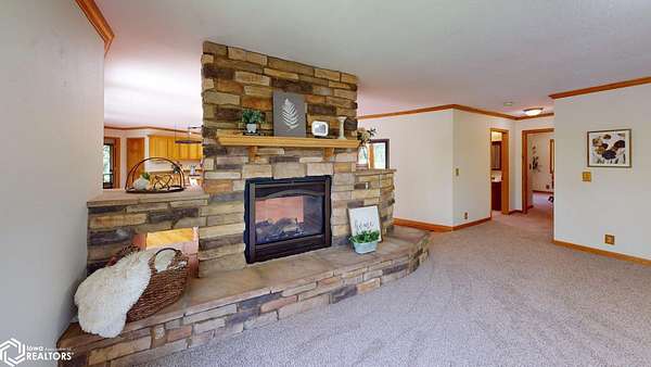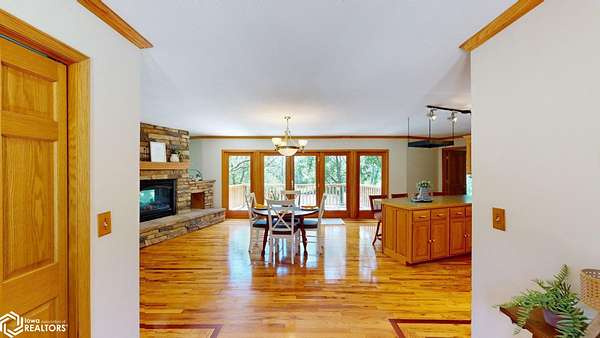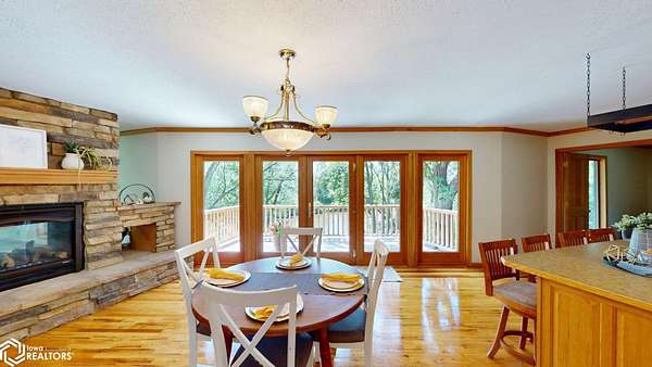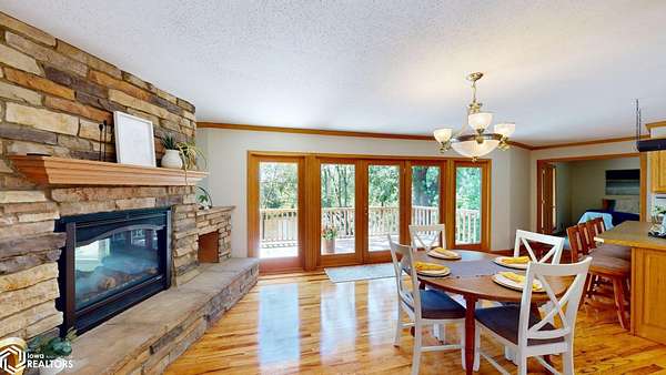 Tucked along the Winnebago River, this stunning 4-bed, 2.5-bath ranch is a rare blend of comfort and natural beauty--set on nearly 23acres. Enjoy breathtaking river views from the living room, kitchen/dining area, and multiple bedrooms. Step outside to one of four brand-new decks, including a private retreat off a main-level bedroom. Three bedrooms and two baths are on the main floor, while the walkout lower level offers two cozy family rooms (pool table included!), a built-in bar area, an additional bedroom, and a bathroom. The property features both an attached 2-stall garage and a detached 2-stall garage. Outdoors, explore your own private pond, 5 acres of tillable land, and 10 acres in a forest reserve (tax-exempt). A beautiful, tree-lined driveway welcomes you into this peaceful, secluded oasis--perfect for wildlife watchers, hunters, or anyone craving serene country living. Truly a one-of-a-kind property where land, water, and comfort meet.