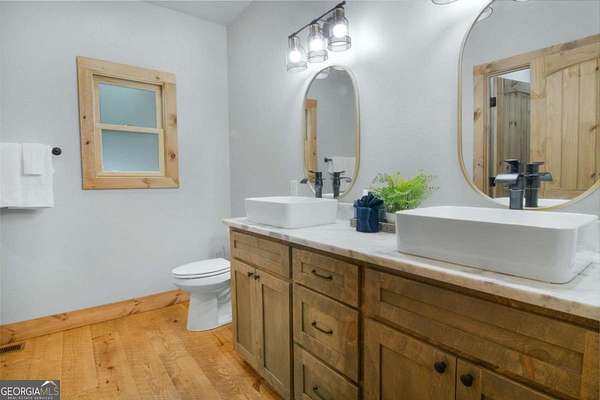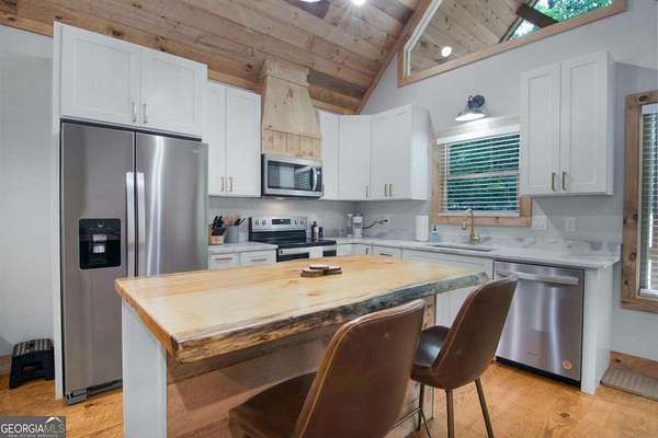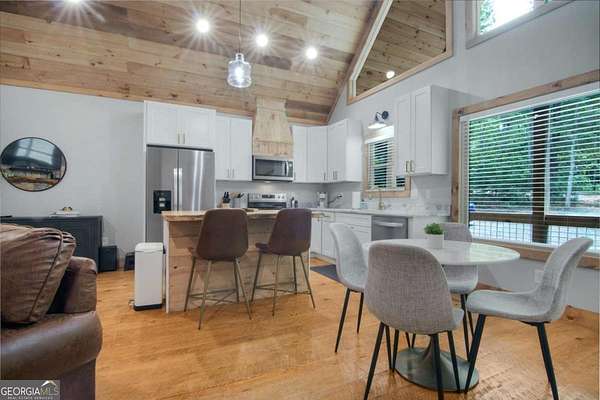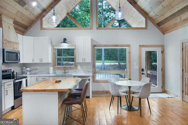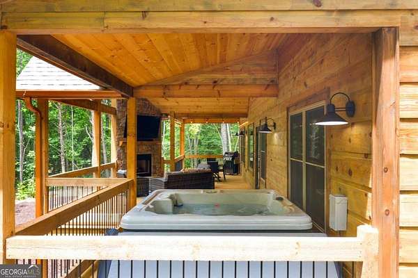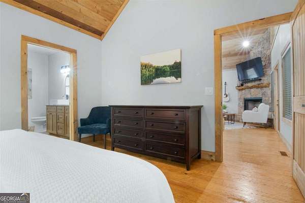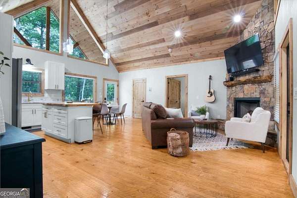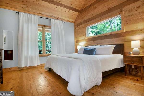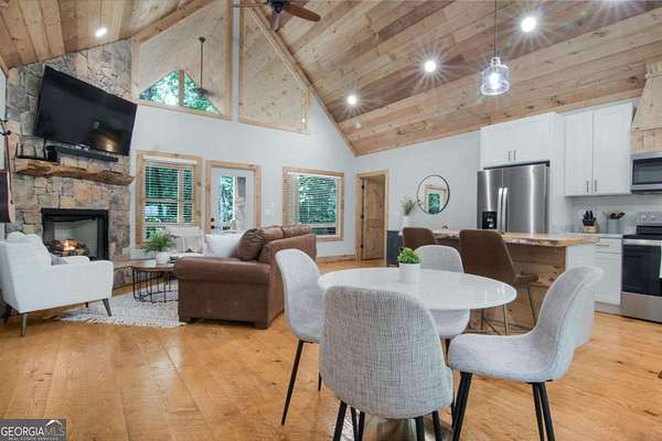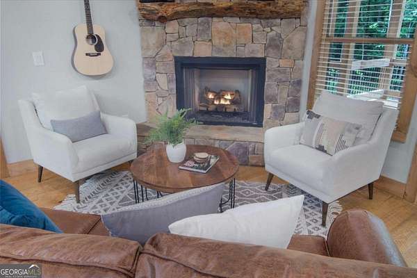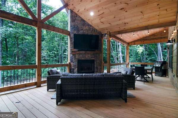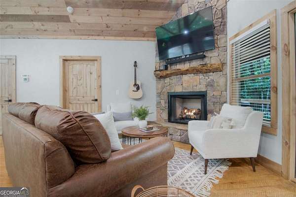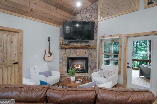Major price reduction! Beautiful, Newer Cabin will WOW you the minute you walk in.. This cabin is perfect for your quick weekend getaway or short-term rental investment close to all the major areas to enjoy, 18 Mins to downtown Blue Ridge, 17 Mins to the Ocoee Whitewater Center where you can watch the whitewater rafters or go on different hiking trails or drive only 25 mins to Murphy, NC to Harrah's Casino! Upgrades are rough, circular sawn hardwood flooring and ceilings, textured walls, custom cabinets, leathered granite countertops, cathedral ceilings in family room & bedrooms w expansive windows from floor to ceiling. Indoor gas log fireplace! Relax on the rear oversized deck by the outdoor stone fireplace, while soaking in your own hot tub. Spacious Master Bedroom on main level with spa-like Master Bath & large walk-in closet. Level lot w/ fire pit and within a few steps from the community lake! You couldn't ask for more in a cabin with beauty and location! All roads in the community are PAVED!