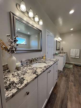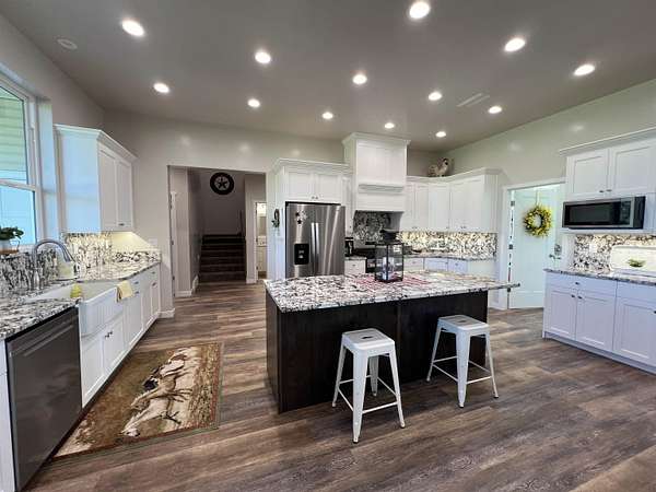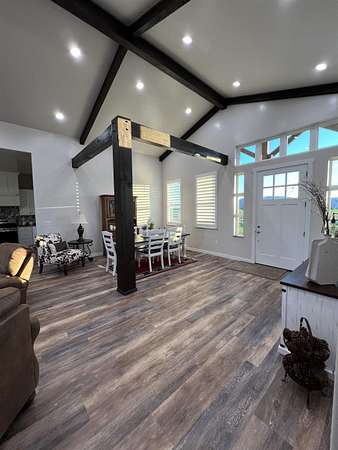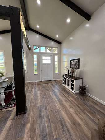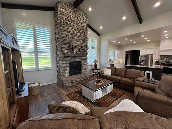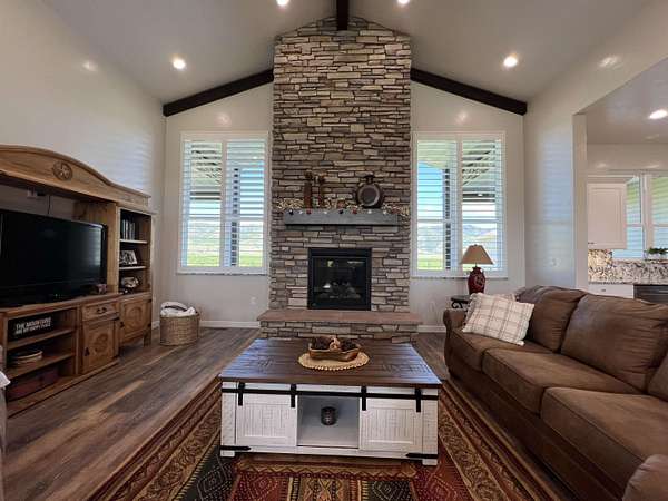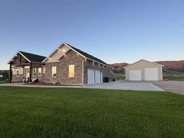 Picturesque Country Living--Your Dream Home Awaits! Imagine escaping the hustle of the city and unwinding enjoying serene mountain views, chirping birds, and breathtaking sunsets that lead to peaceful starlit nights. This one-of-a-kind home offers the perfect blend of luxury, functionality, and natural beauty. This beautiful home sits on 2.5 acres and is surrounded by the perfect backdrop for tranquility and relaxation. Some of the highlights include: Custom Timber Beam Work: The magnificent and spacious front and back covered patios, as well as the main living area, feature exquisite timber beam work. Gourmet Kitchen and Butler's Pantry: At the heart of the home, the gourmet kitchen boasts granite countertops, a full granite backsplash, a charming white farmhouse sink, and a massive Butler's Pantry. Whether you are a culinary enthusiast or love hosting gatherings, this kitchen is a true masterpiece. Spacious Bedrooms & Bonus Room: Four generously sized bedrooms complete with walk in closets provide ample space for family and guests. Upstairs, the large bonus room with its own bathroom awaits - perfect for a playroom, home theater, or private retreat. Luxurious Bathrooms: Each of the 4.5 bathrooms is elegantly designed, featuring modern fixtures and thoughtful details including custom tilework and granite countertops. Whether you're starting your day or winding down, the elegant master bathroom suite offers comfort, style, and a sense of indulgence. Durable LVP Flooring & Cozy Carpets: Enjoy the comfort of luxury vinyl plank (LVP) flooring in the main living spaces, while plush carpets in the bedrooms create a cozy ambiance. Basement with Separate Entrance: The separate entrance to the mostly finished basement opens up endless possibilities. Pick your doors and perfect flooring to create a private guest suite, a home office or gym, or even a hobby space-the choice is yours! Large Laundry Room: Practicality meets style in the spacious laundry room, complete with a stainless-steel utility sink. Thoughtful Upgrades: You'll never have to worry about running out of hot water with the on demand tankless water heater, while the water softener system helps keep cleaning a breeze. A convenient gas hookup and 220V outlet are found on the back patio, and a 30 Amp RV plug is wired in the shop. Outdoor Oasis: Step outside to 2.5 acres of bliss. The beautifully landscaped grounds offer plenty of room to roam, and potential for gardening, animals, or outdoor entertaining. Animal Friendly: Whether you have horses, chickens, or furry companions, this property welcomes them all. The expansive acreage provides ample space for grazing and exploring. Massive Shop: Calling all hobbyists, gearheads, and outdoor enthusiasts! The oversized shop is a dream come true. With high ceilings and wide garage doors (complete with automatic openers), it's perfect for storing your RV, boat, and all your toys. Plus, there's still plenty of room to work on projects. Contact the listing agent to schedule your private showing today to truly experience all this incredible property has to offer!