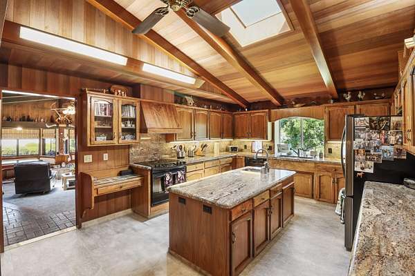 Original Owner/Builder Palo Cedro home near North Cow Creek School. 1,216 Square foot detached wood shop/garage with hardi-board. Also 30X40 metal RV Building w/ two 12X12 metal roll up doors and skylights. Paved circle driveway and attached covered carport with built in cabinets and storage room. Detached carport or wood storage. Home has hardi-board and brick exterior and a brand new roof (2025) with transferrable warranty. Owned 27 panel solar system. Beautiful finishes throughout this custom home includes native black walnut cabinets and solid granite counter tops. Kitchen has a built in booth with table that matches the countertops. Cedar and Redwood finishes throughout and Brazilian Hardwood floors. Pull-out drawers in most cabinets in the house. Cozy enclosed sun room off of the family room stamped concrete floors. Additional office and craft room. Vaulted ceilings, built in bar and double booth seating for fun family gatherings. This home is truly one of a kind, has a wonderful Palo Cedro location and located in the Foothill School District.