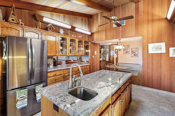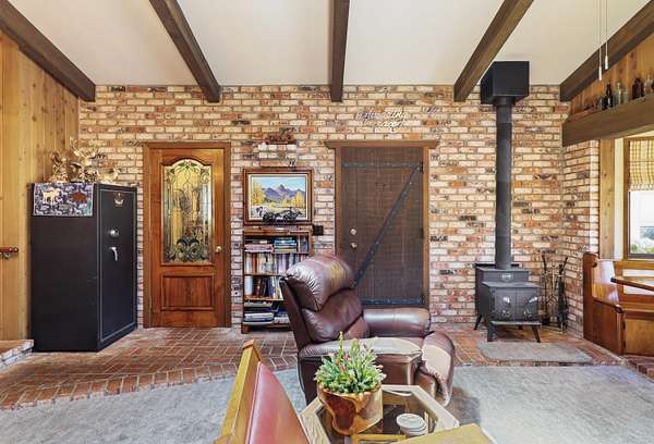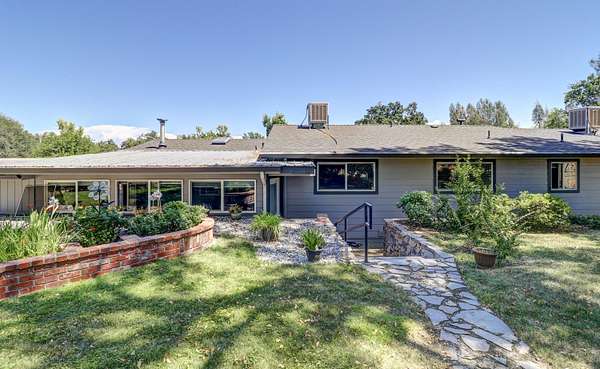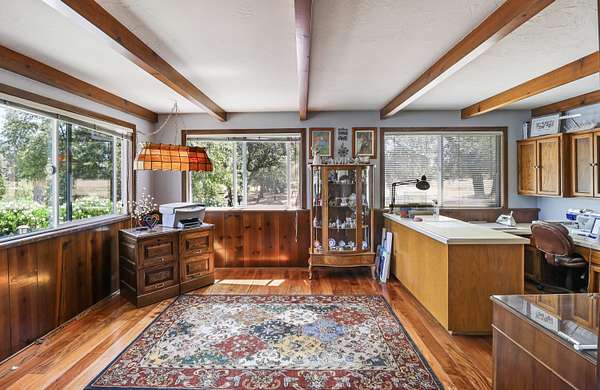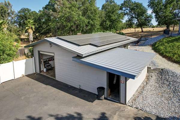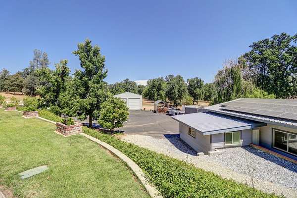 BRAND NEW HEATING & AIR! Original Owner/Builder Palo Cedro home near North Cow Creek School. High speed fiber optic internet. 1,216 Square foot detached wood shop/garage with hardi-board. Also 30X40 metal RV Building w/ two 12X12 metal roll up doors and skylights. Paved circle driveway and attached covered carport with built in cabinets and storage room. Detached carport or wood storage. Home has hardi-board and brick exterior and a brand new roof (2025) with transferrable warranty. Owned 27 panel solar system. Beautiful finishes throughout this custom home includes native black walnut cabinets and solid granite counter tops. Kitchen has a built in booth with table that matches the countertops. Cedar and Redwood finishes throughout and Brazilian Hardwood floors. Pull-out drawers in most cabinets in the house. Cozy enclosed sun room off of the family room stamped concrete floors. Additional office and craft room. Vaulted ceilings, built in bar and double booth seating for fun family gatherings. This home is truly one of a kind, has a wonderful Palo Cedro location and located in the Foothill School District.